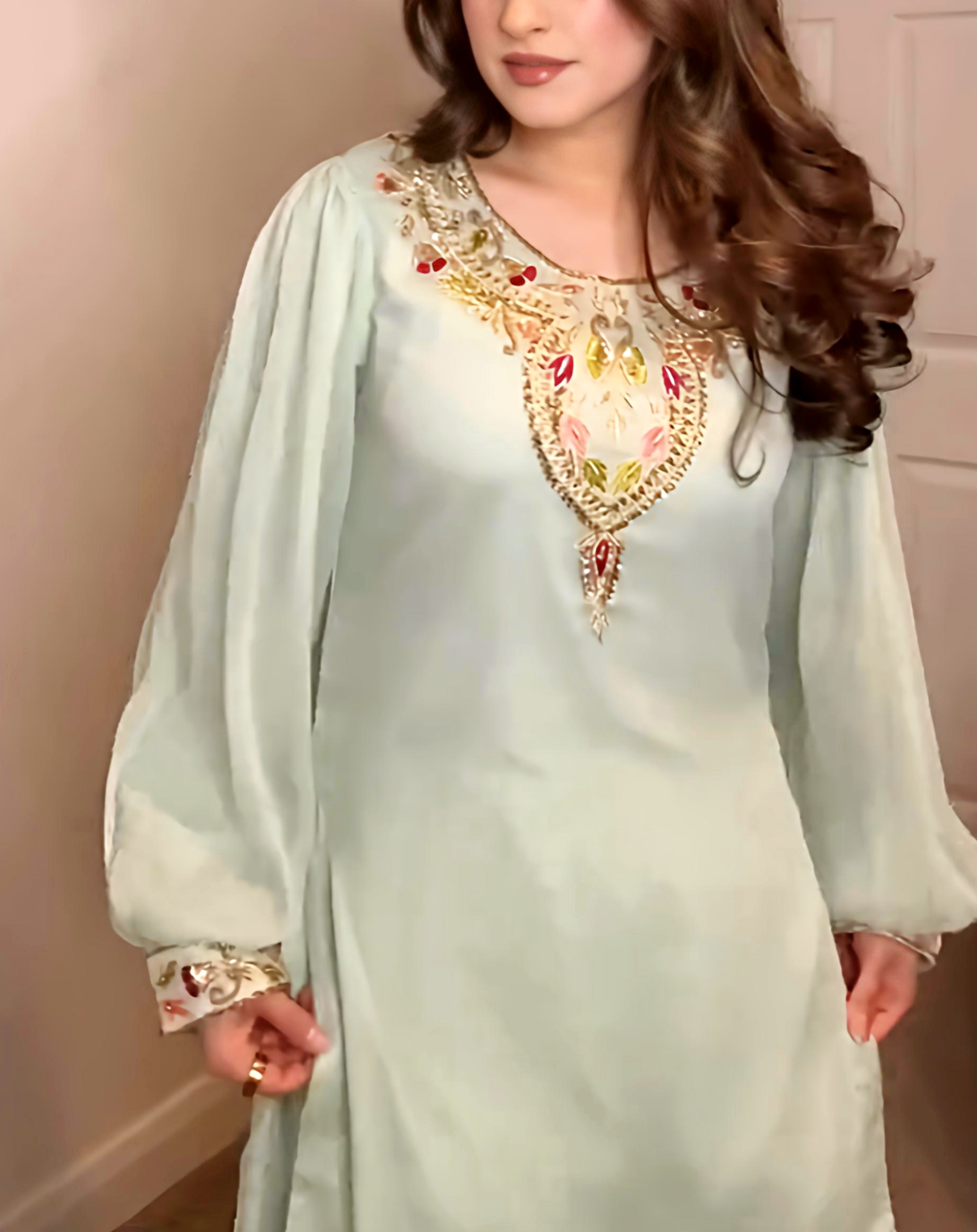 Premium Chinon Kurti-Blouse-Pant-Dupatta Set