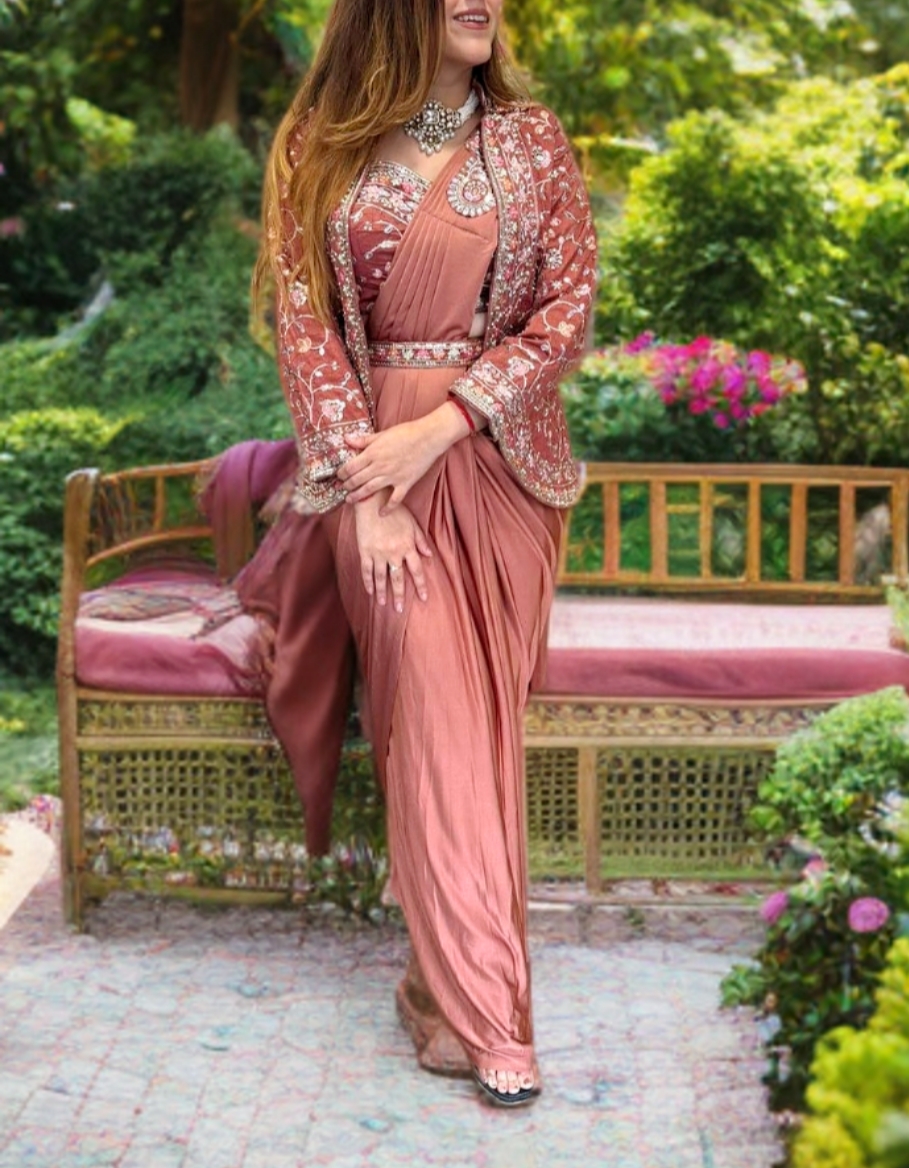 Luxury Ready-to-Wear Satin Saree with Designer Kotiย