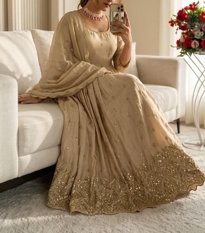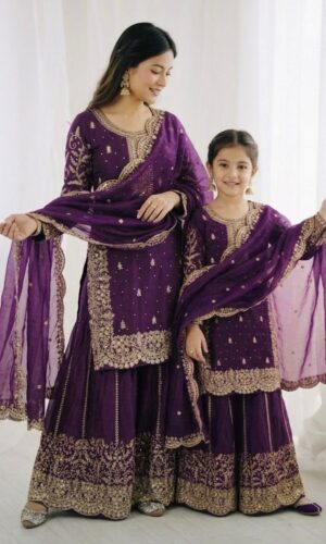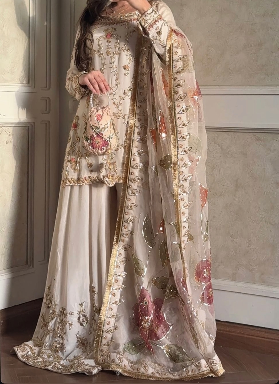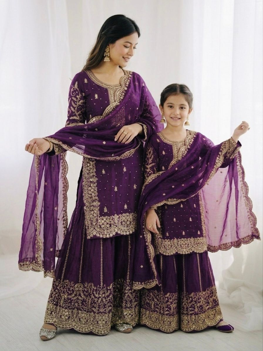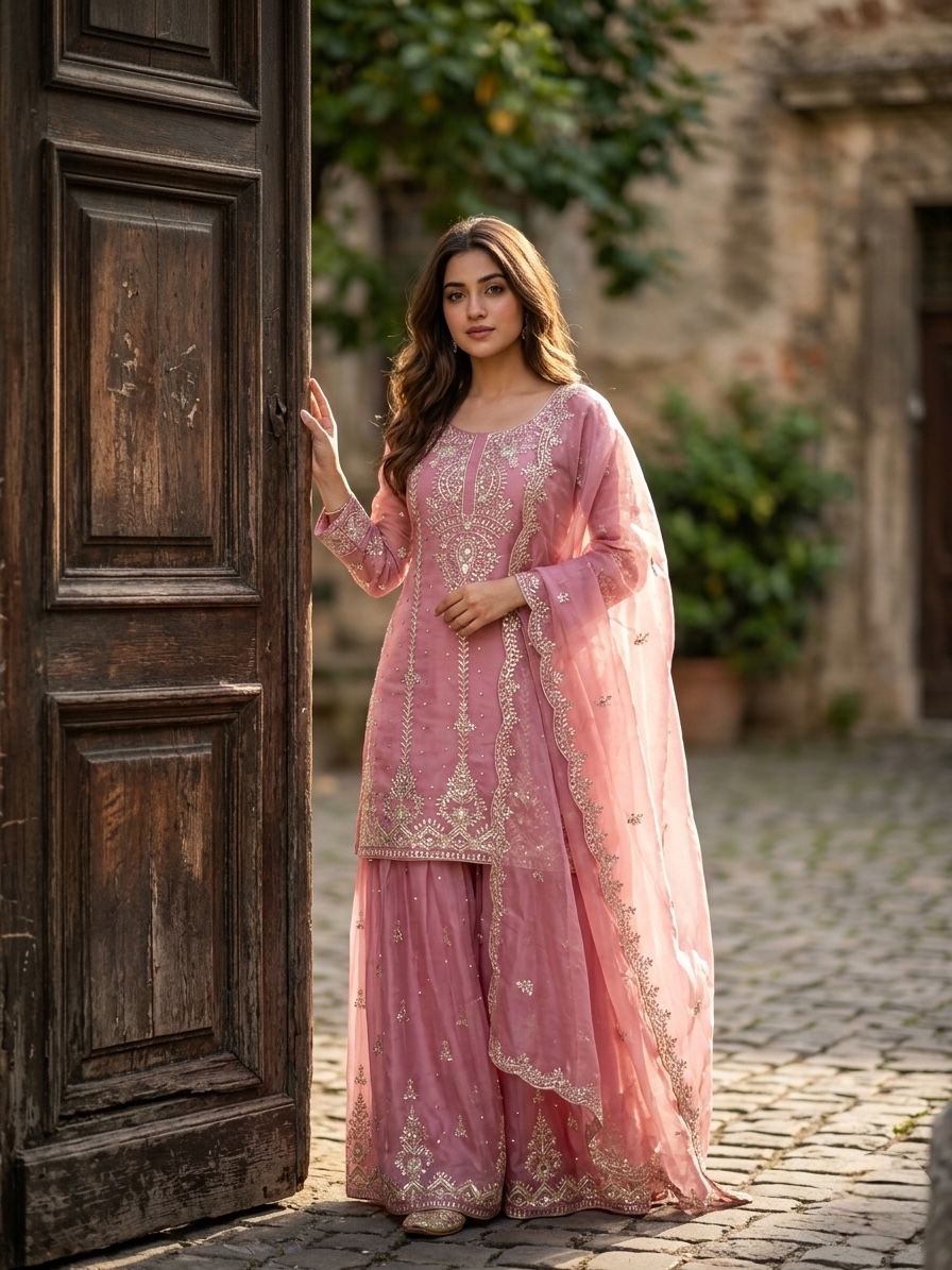 Luxurious Chinon Top-Sharara-Dupatta Set