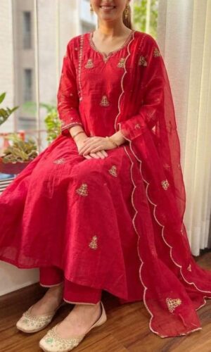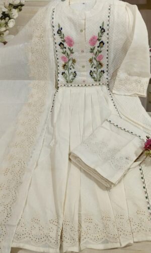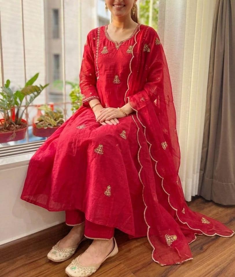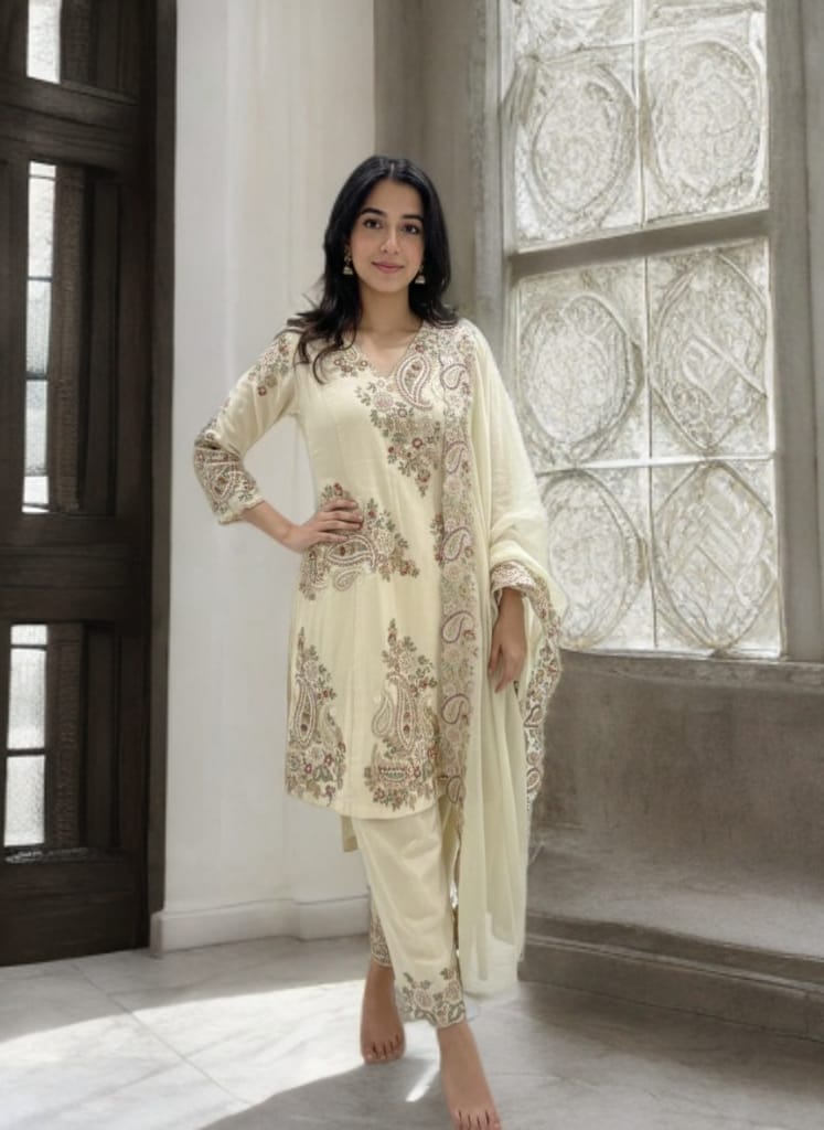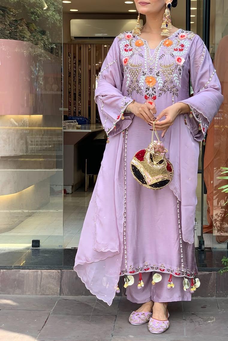 Designer Embroidered Top, Palazzo & Dupatta Set