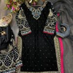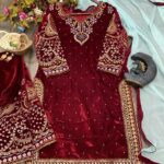 Pant: Velvet with Matching Cording Sequence Embroidery Work.
