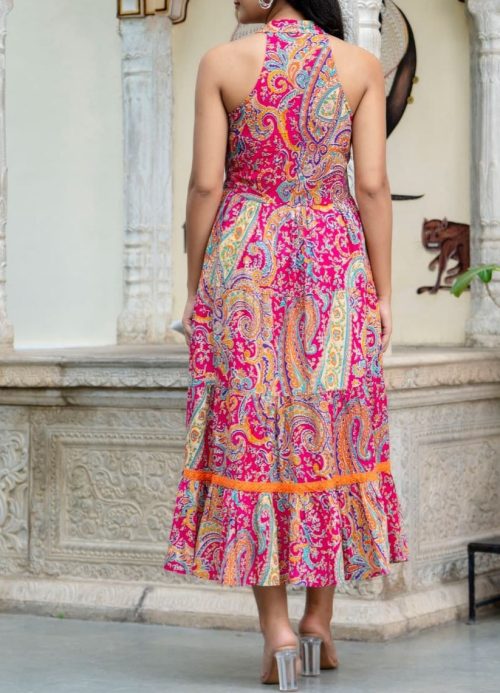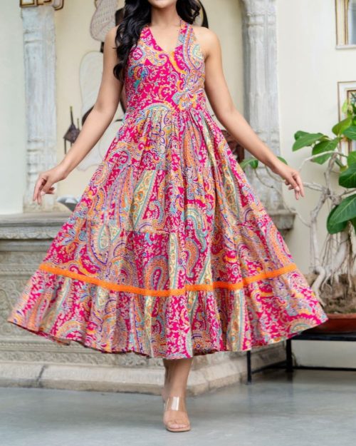 Cotton Fabric, Beautiful printed Multicolour long dress. Length- 50 inches