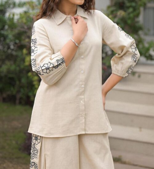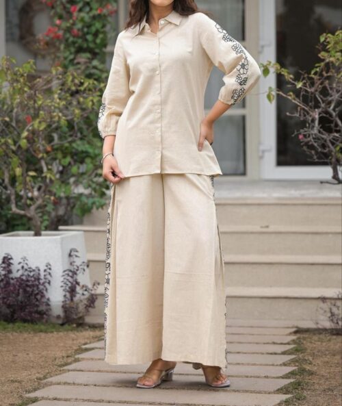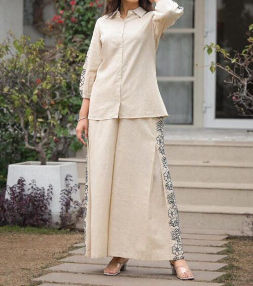 Newest neutral‑toned co‑ord set—where comfy meets chic. Crafted in premium linen‑cotton blend, this duo features: