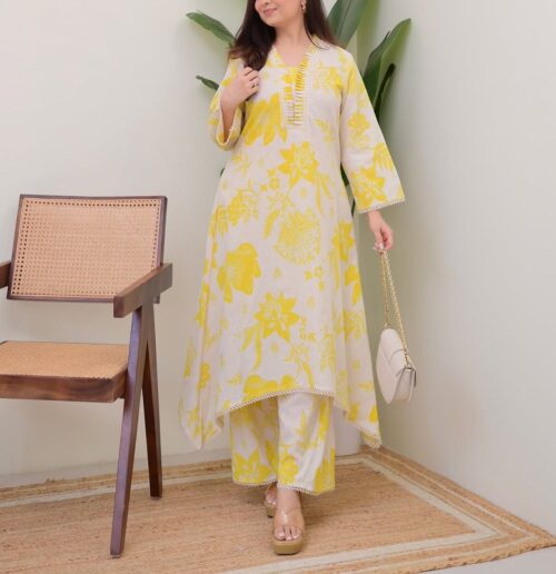 Brighten up your everyday style with this vibrant and comfortable floral printed kurti pant set crafted from premium Cotton.