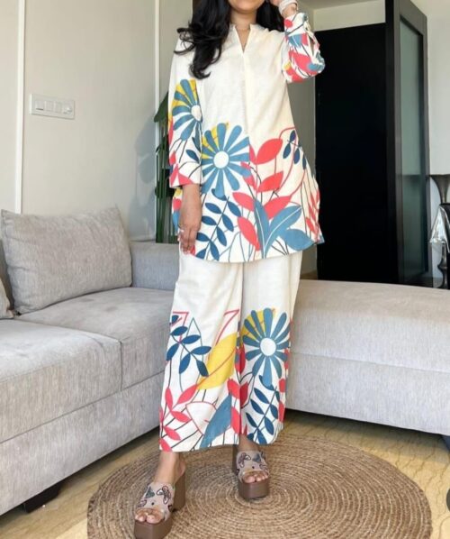 Brighten up your everyday style with this vibrant and comfortable floral printed coord set crafted from premium Flex Cotton.