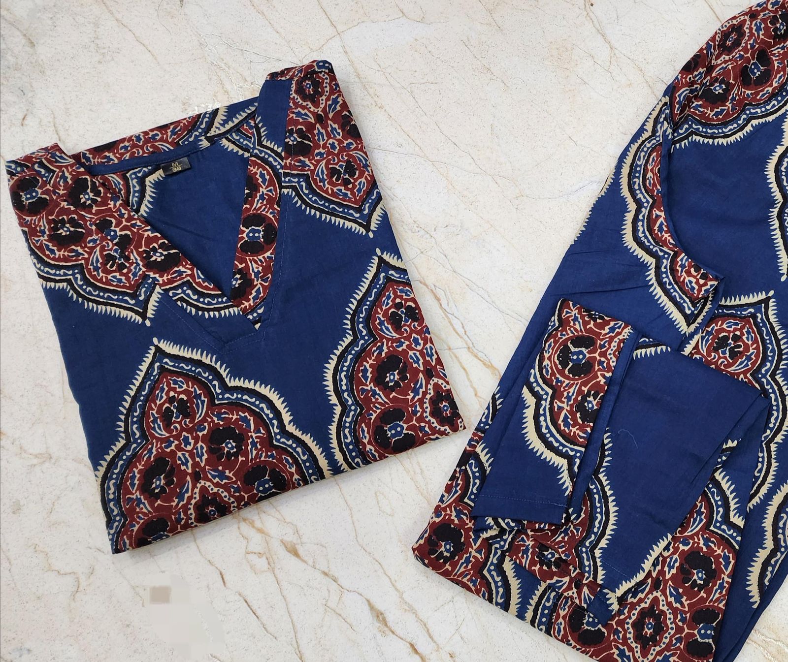 Top- Cotton with beautiful print and ethnic leaf motifs.