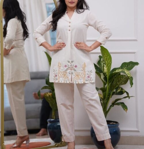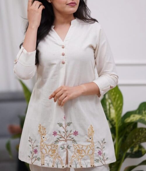 Top: Made from cotton,this beautifully embroidered top adds a touch of charm and elegance, keeping you comfortable and effortlessly stylish all day long.