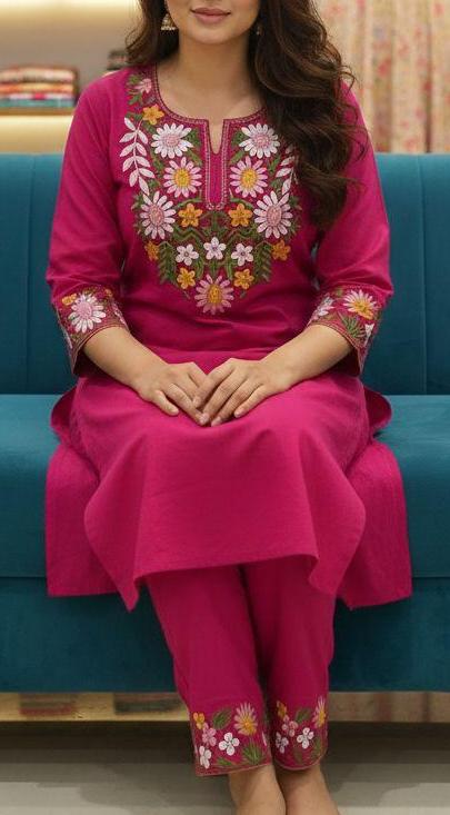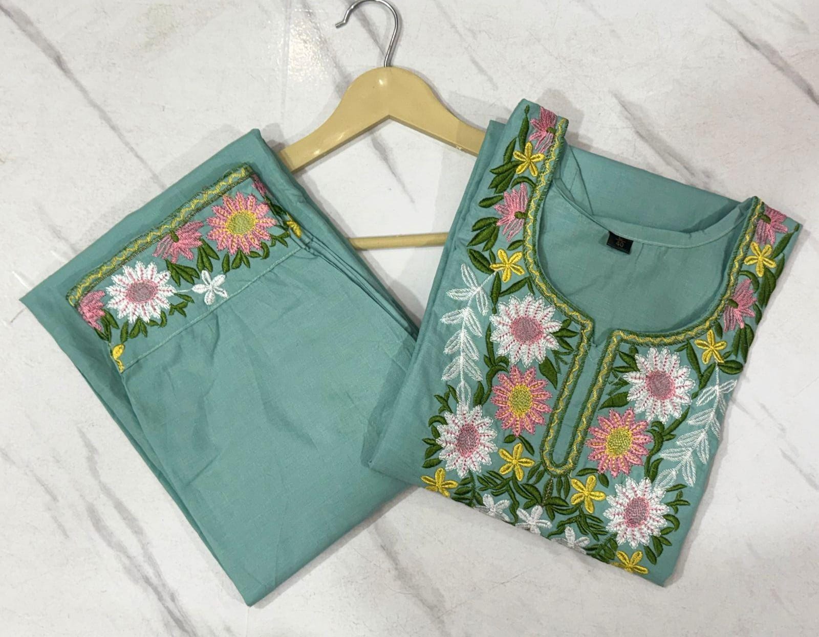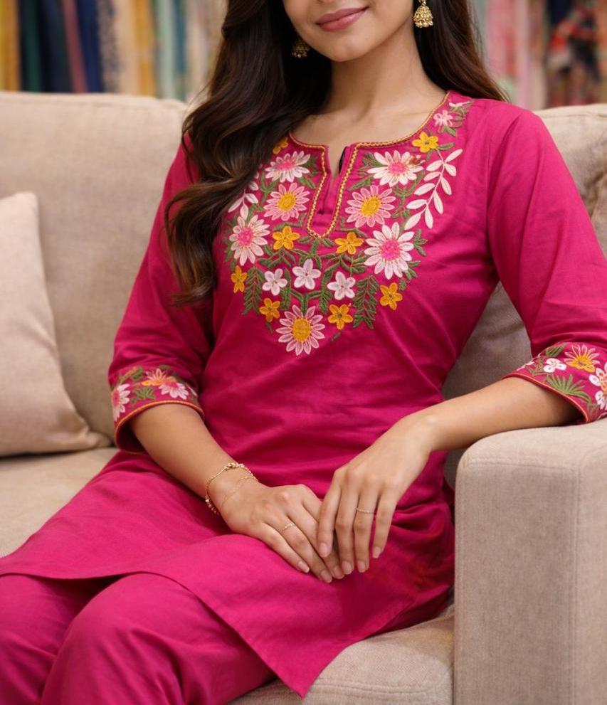 Crafted from premium pure cotton, this stunning Co-ord set showcases intricate embroidery that beautifully blends traditional elegance with a modern silhouette. Designed to be lightweight and breathable, it ensures all-day comfort while offering a graceful, calming aesthetic.