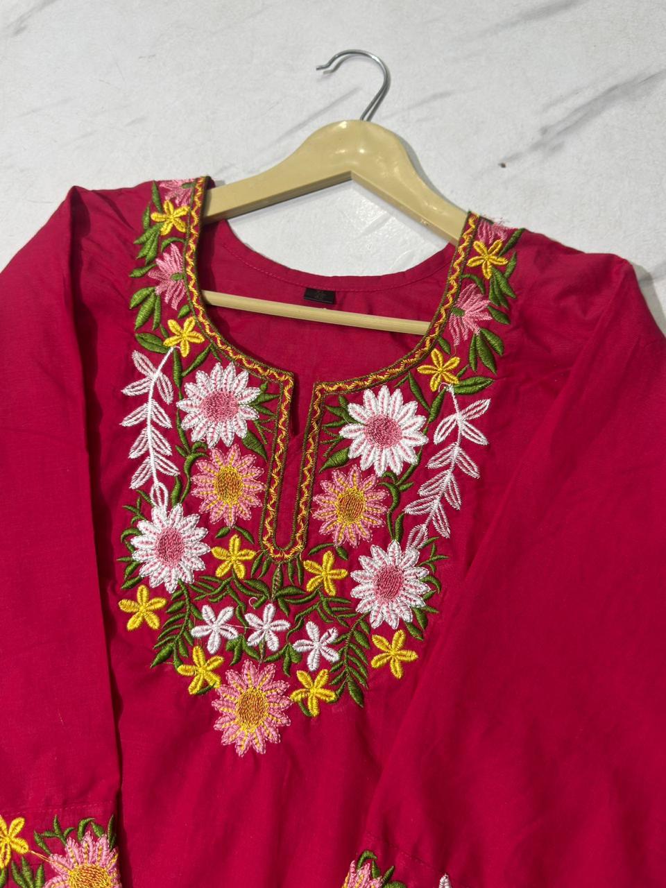 Work: Intricate embroidery on Kurti (front & sleeves) and Palazzo