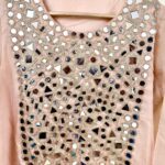 Top: Made from premium Tabby Silk, featuring graceful semi-bell sleeves and soft crape lining for a perfect festive look. Adorned with coded embroidery and original mirror work for that authentic sparkle.