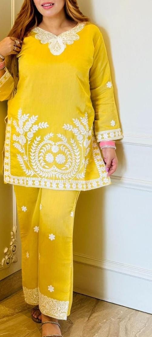 Crafted from soft, breathable cotton, this cordset combines intricate embroidery detailing with a touch of festive charm. Perfect for both casual and semi-occasion wear, it’s the ideal piece to feel comfortable and stylish at any event.