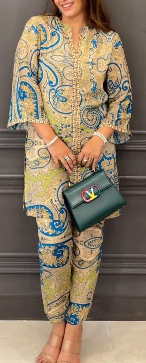 Crafted from premium Muslin digital print fabric, this outfit offers ultimate comfort and effortless sophistication β€” perfect for brunches, get-togethers, or casual outings.
