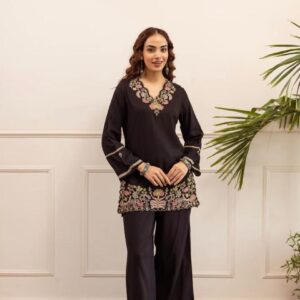 Turn heads wherever you go in this stunning black embroidered co-ord set β where comfort meets pure elegance.