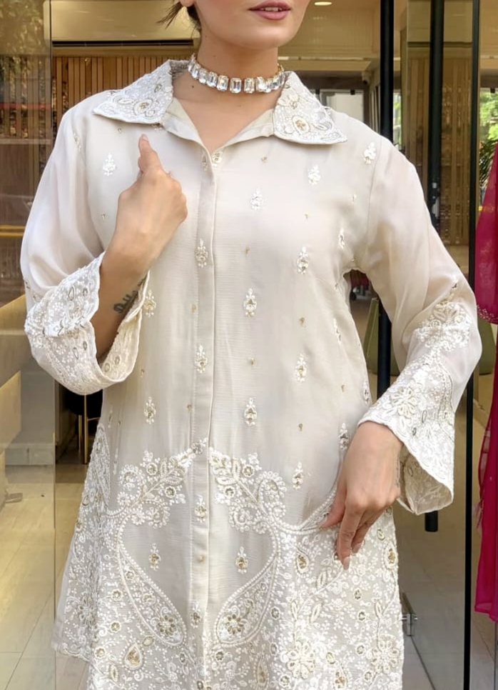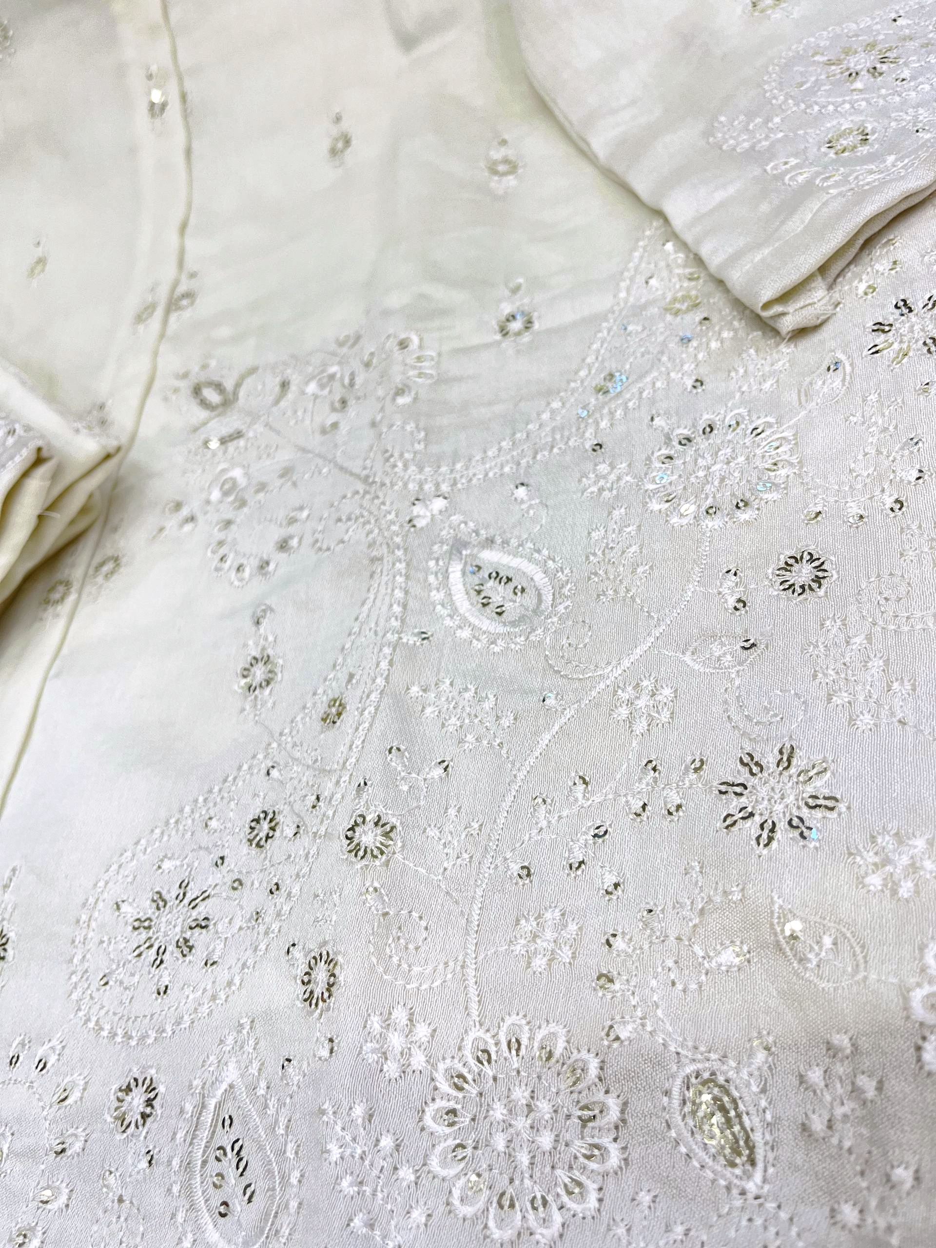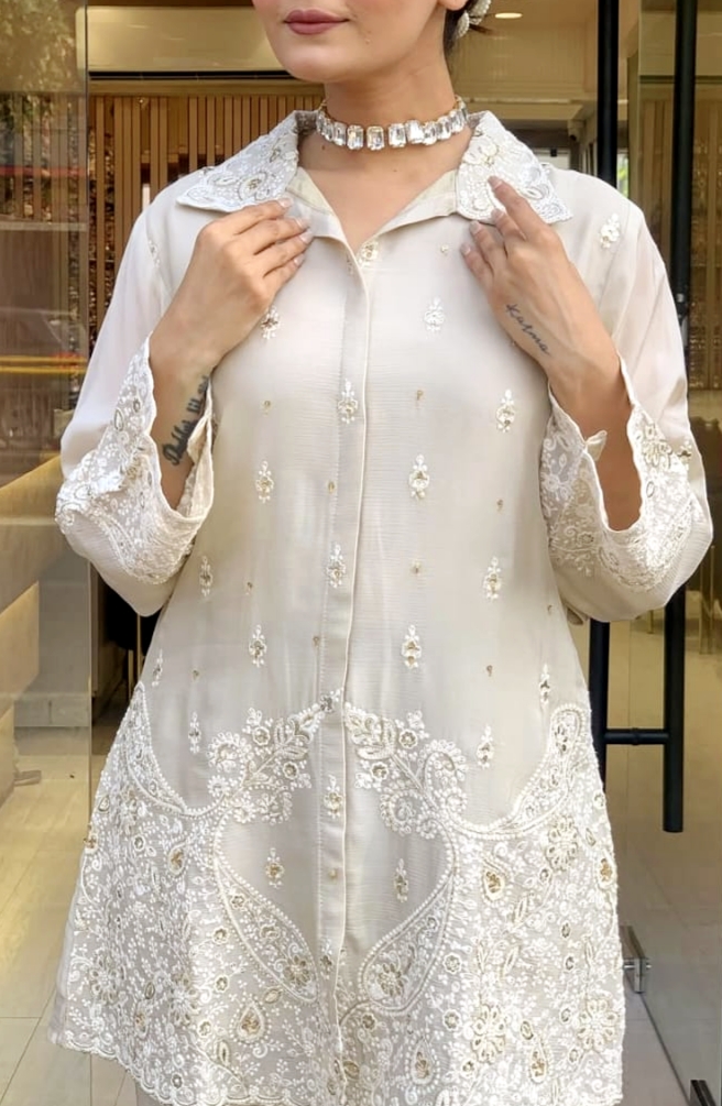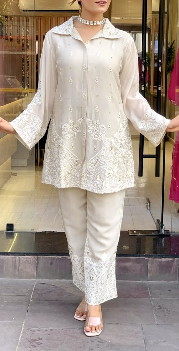 Elevate your festive style with this elegant 2-piece Co-ord set crafted in rich Chanderi Silk and adorned with intricate premium embroidery work. Designed to offer a graceful silhouette with soft lining for all-day comfort.