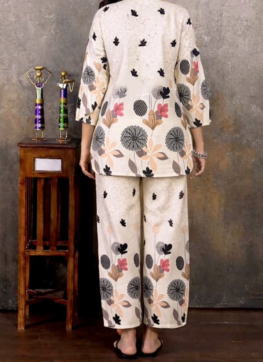 Step into summer with our Premium Woven Taj Cotton Co-ord Set, beautifully paired with graceful Fox Georgette sleeves β the perfect blend of comfort and class. Ideal for workdays, brunches & vacation vibes.