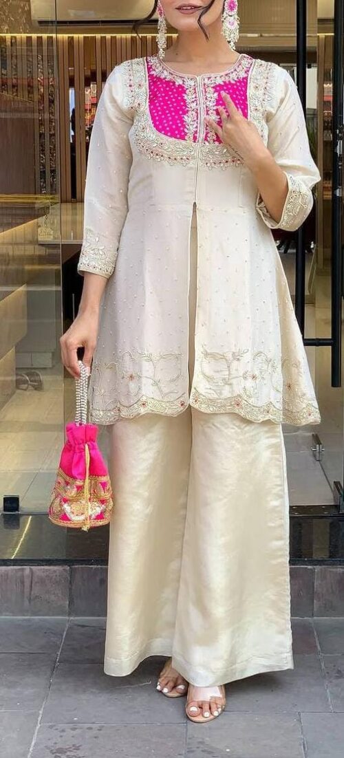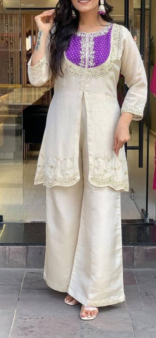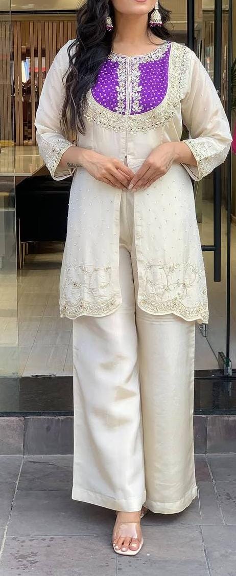 Top features Beautiful embroidery coding and sequin work. Flattering fit that blends tradition with trend.