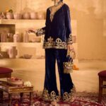 Includes: Embroidered Velvet Top, Elastic Palazzo & Matching Potli