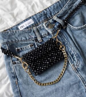 Turn heads after dark with Black Bling, a bold crystal statement bag. Handcrafted with shimmering black beads and a detachable luxe gold sling, it perfectly blends edgy glamour with timeless elegance.