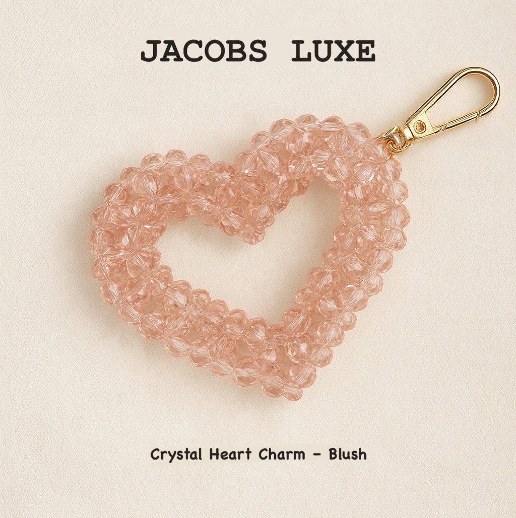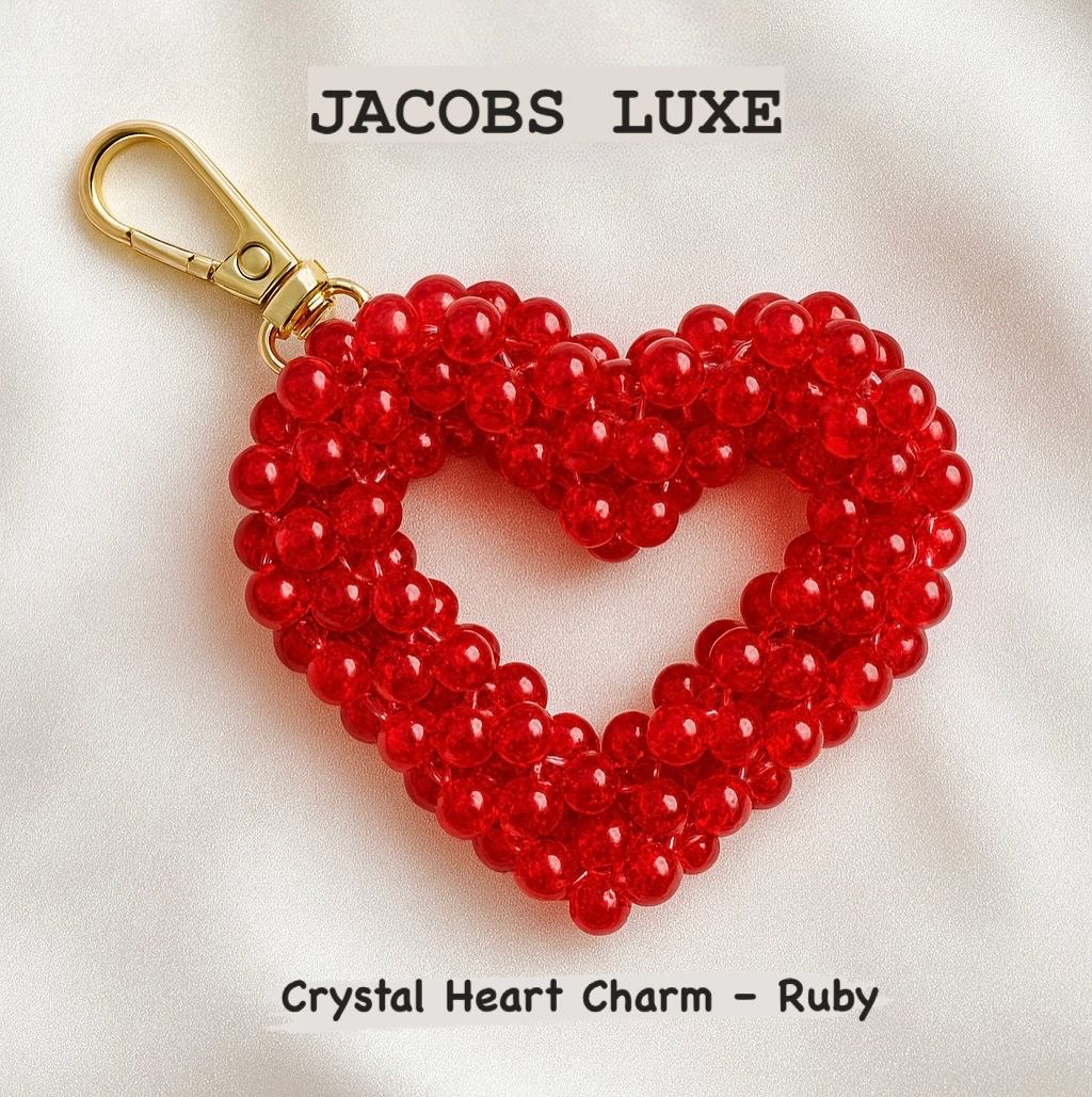 A beautifully handcrafted crystal heart charm made with premium faceted beads — adding instant sparkle and elegance to your keys, bags, or gifts. Finished with a gold clasp and crafted in true Jacobs Luxe style.