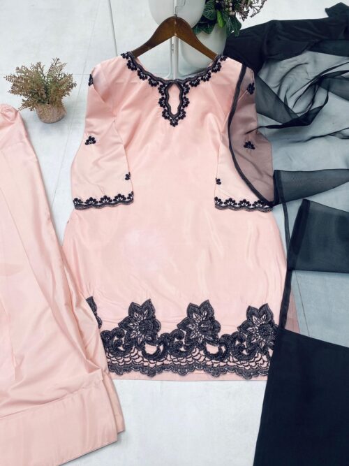 Salwar: French crepe, free size, fully stitched, 39” length.