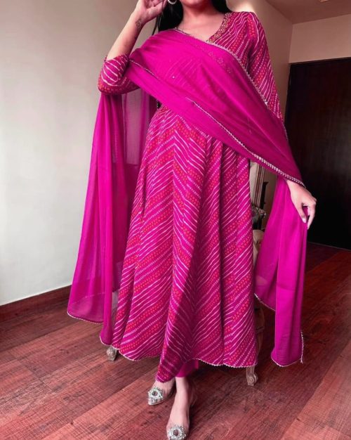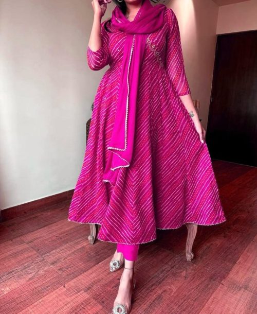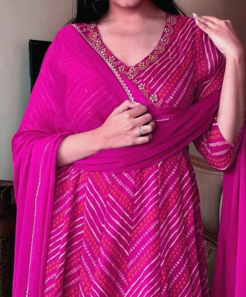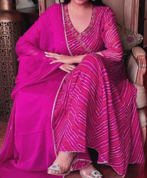 Especially for Summers, Pink color, Anarkali style and comfortable material suit.