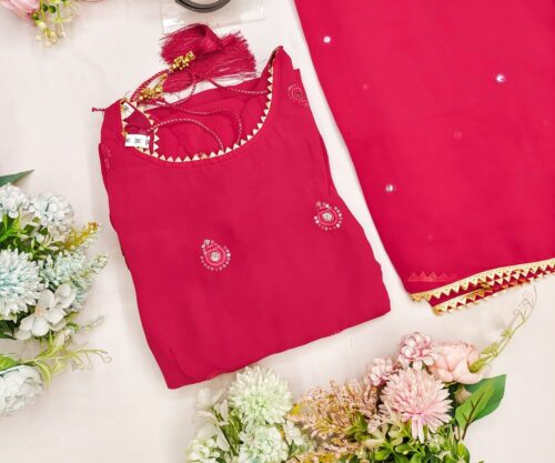 Beautiful matching dupatta made from Georgette fabric with four side lace work.