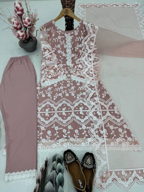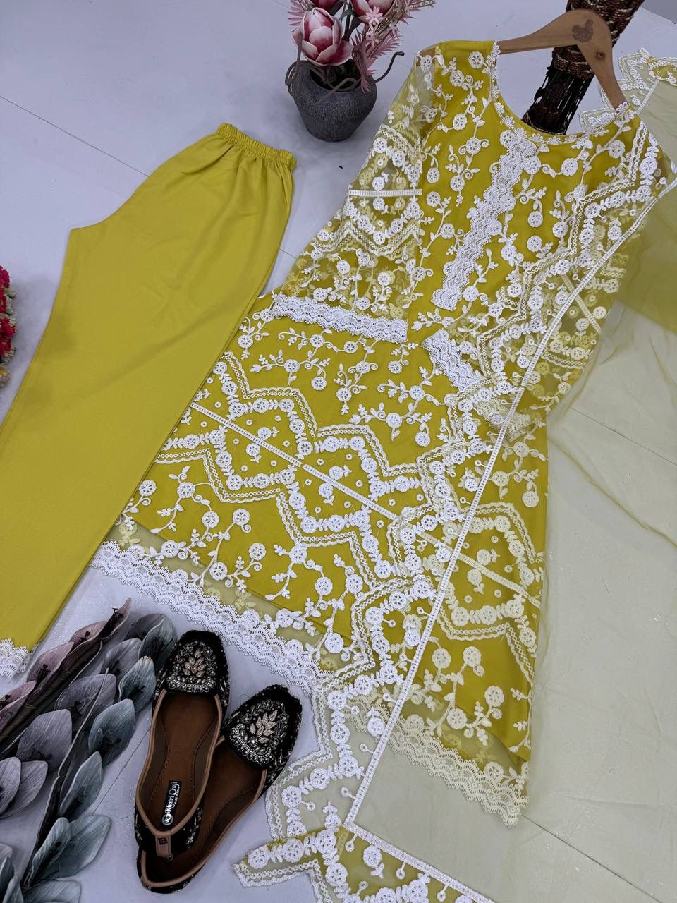 Get festive-ready with our premium Designer Fancy Top-Palazzo-Dupatta Set, featuring exquisite embroidery work and Zipyo-less detailing for a flawless look!