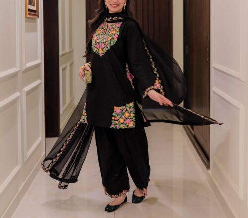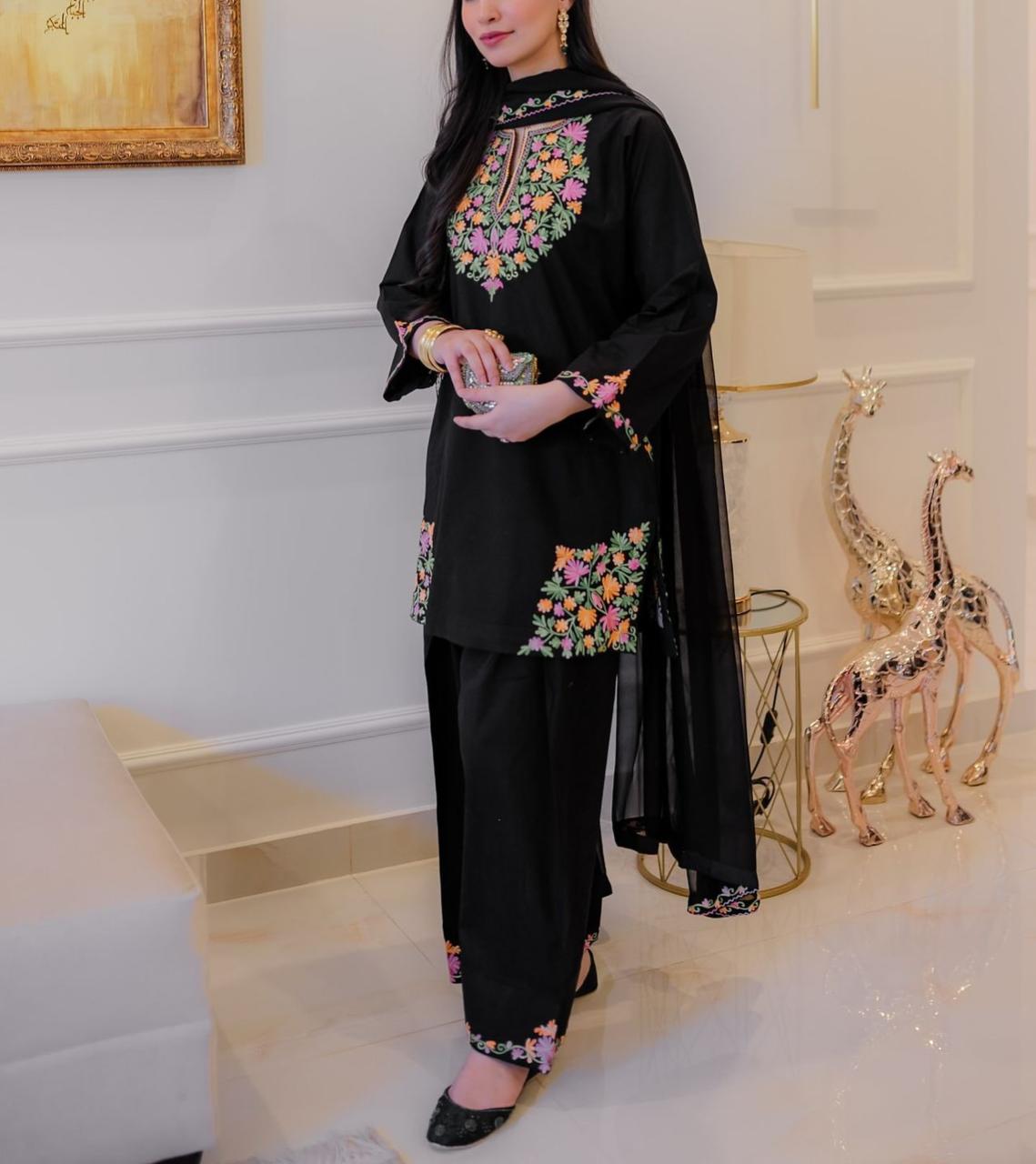 Fabric: Crape Silk (Top & Plazzo), Georgette (Dupatta)