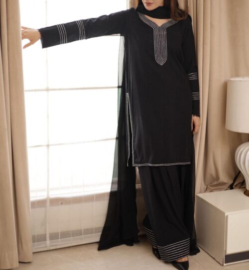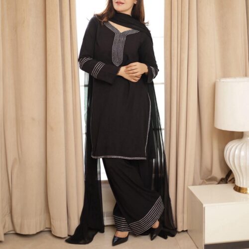 Crafted in premium Cotton fabric, this suit makes a bold statement gracefully. Adorned with delicate embroidery, it brings a simple yet beautiful look.