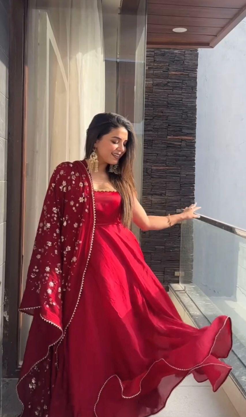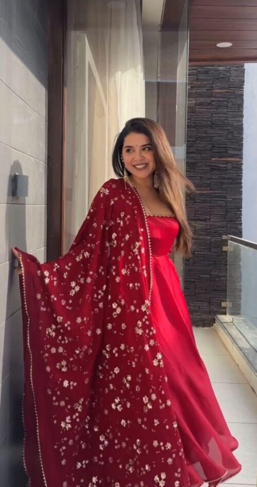 Elevate your festive and party wardrobe with this stunning designer gown ensemble crafted with elegance, comfort, and attention to detail.