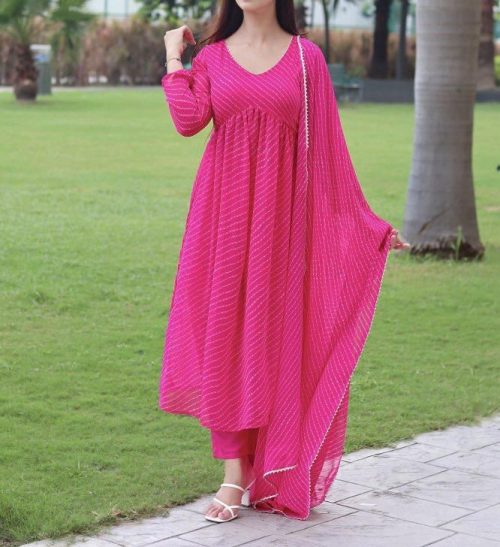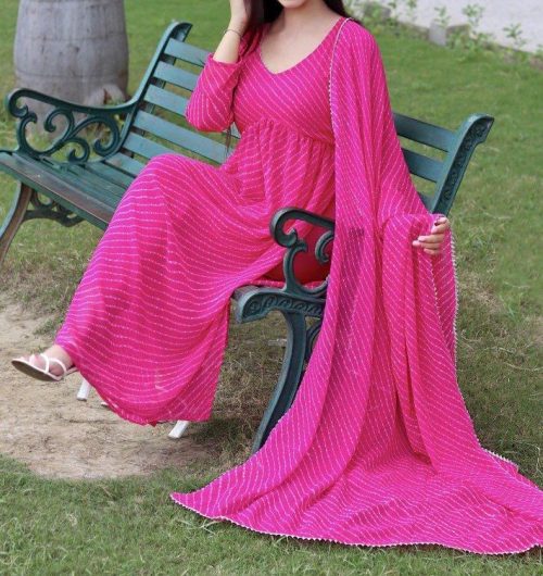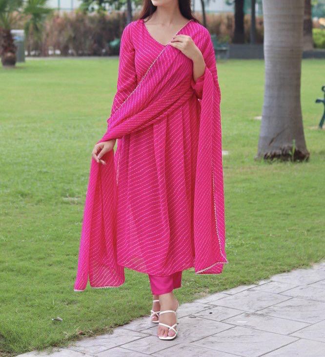 Pink Jaipuri Alia Style Bandhani 3 pc set