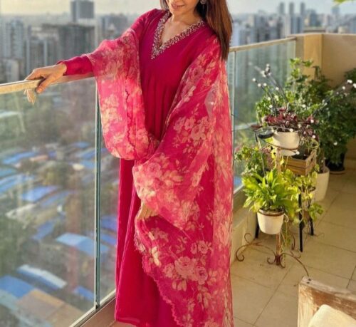 Presenting a beautifully crafted Chanderi suit that makes you feel comfortable and stylish always.