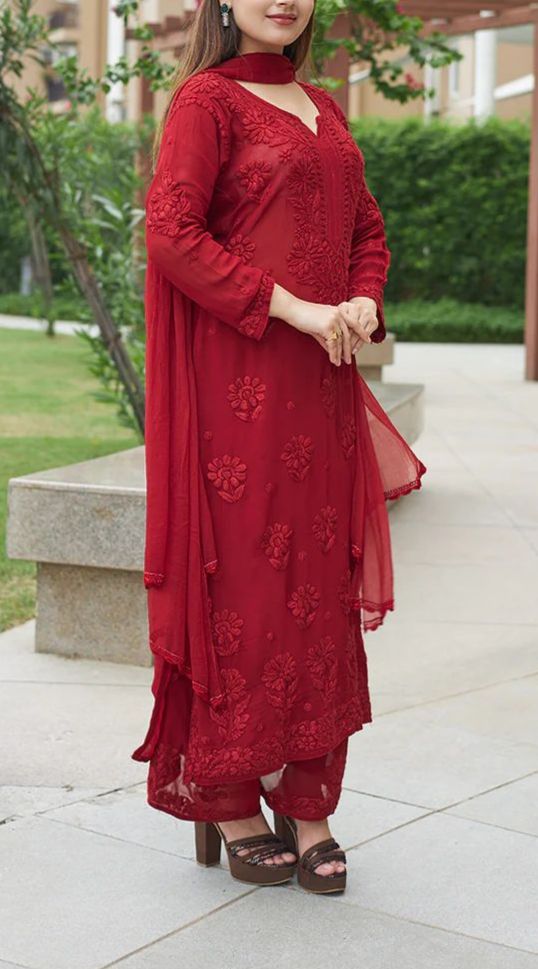 Scarlet Royale Red Georgette Embroidered Suit Set