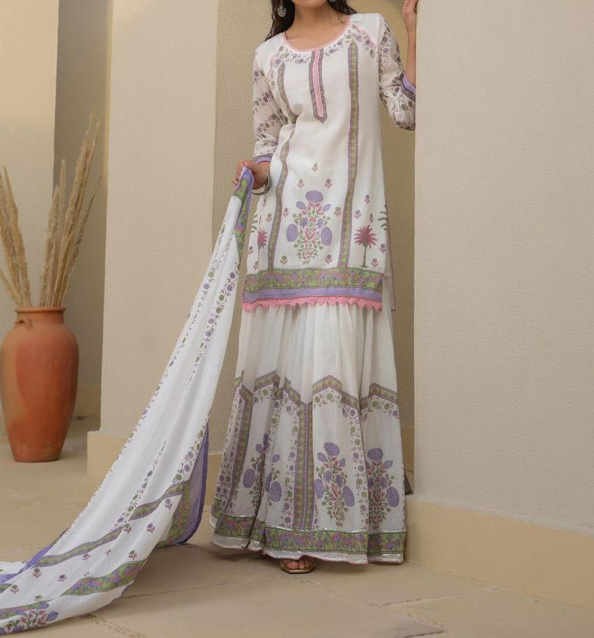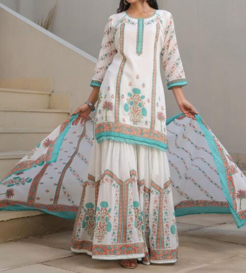 Sharara- Cotton fabric with beautiful embroidery work to match with Top.
