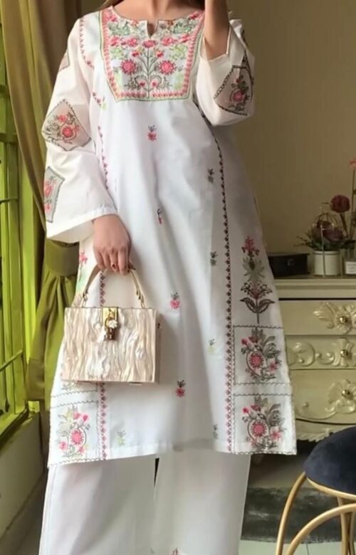 This beautifully crafted 2-piece set in classic white radiates purity, grace, and timeless style.
