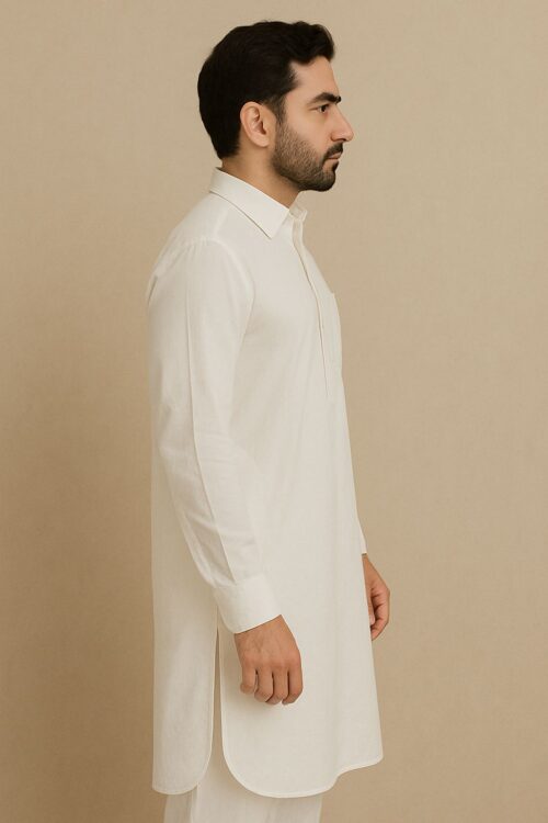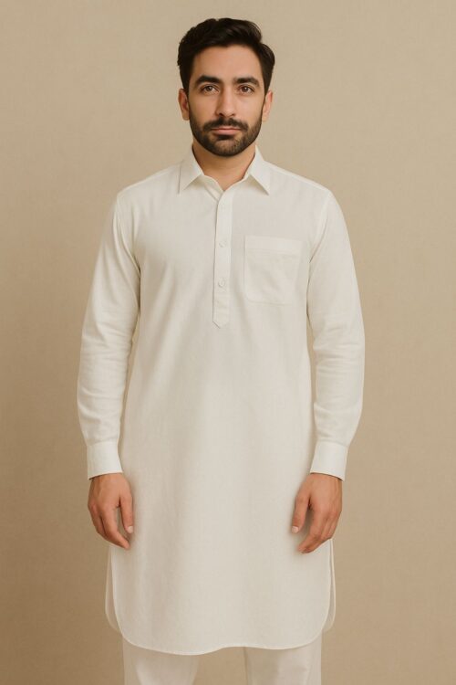 Men’s Cotton Pathani Kurta Pyjama Set is a traditional South Asian outfit known for its elegant yet rugged style. Tailored for a crisp look, this is made from breathable 100% cotton that ensures all-day comfort and a smooth finish.