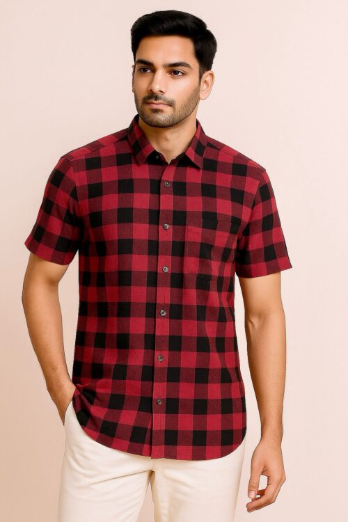 Elevate your casual style with the Vintage Brick Check shirt, crafted from soft, breathable cotton for all-day comfort. Featuring a timeless red and black checkered pattern, this versatile piece suits both relaxed outings and smart-casual occasions. Available in sizes M to XXL, with custom tailoring options for a slim or regular fit to suit your style.