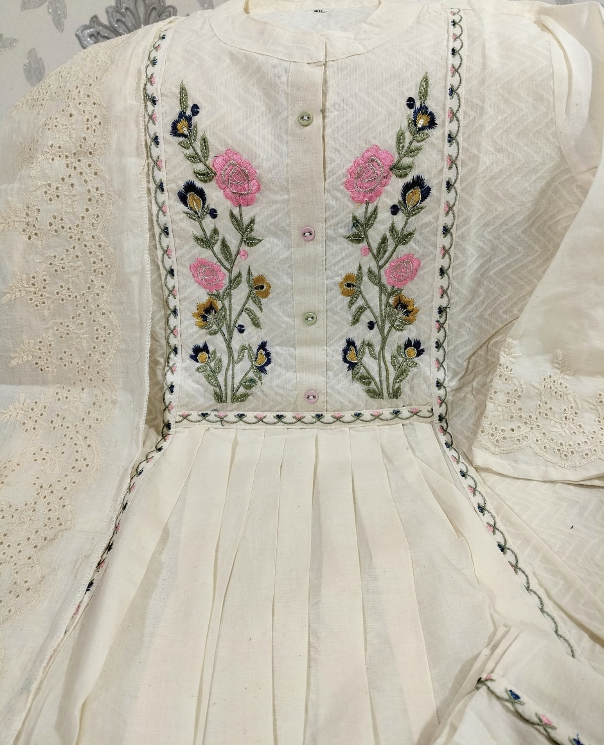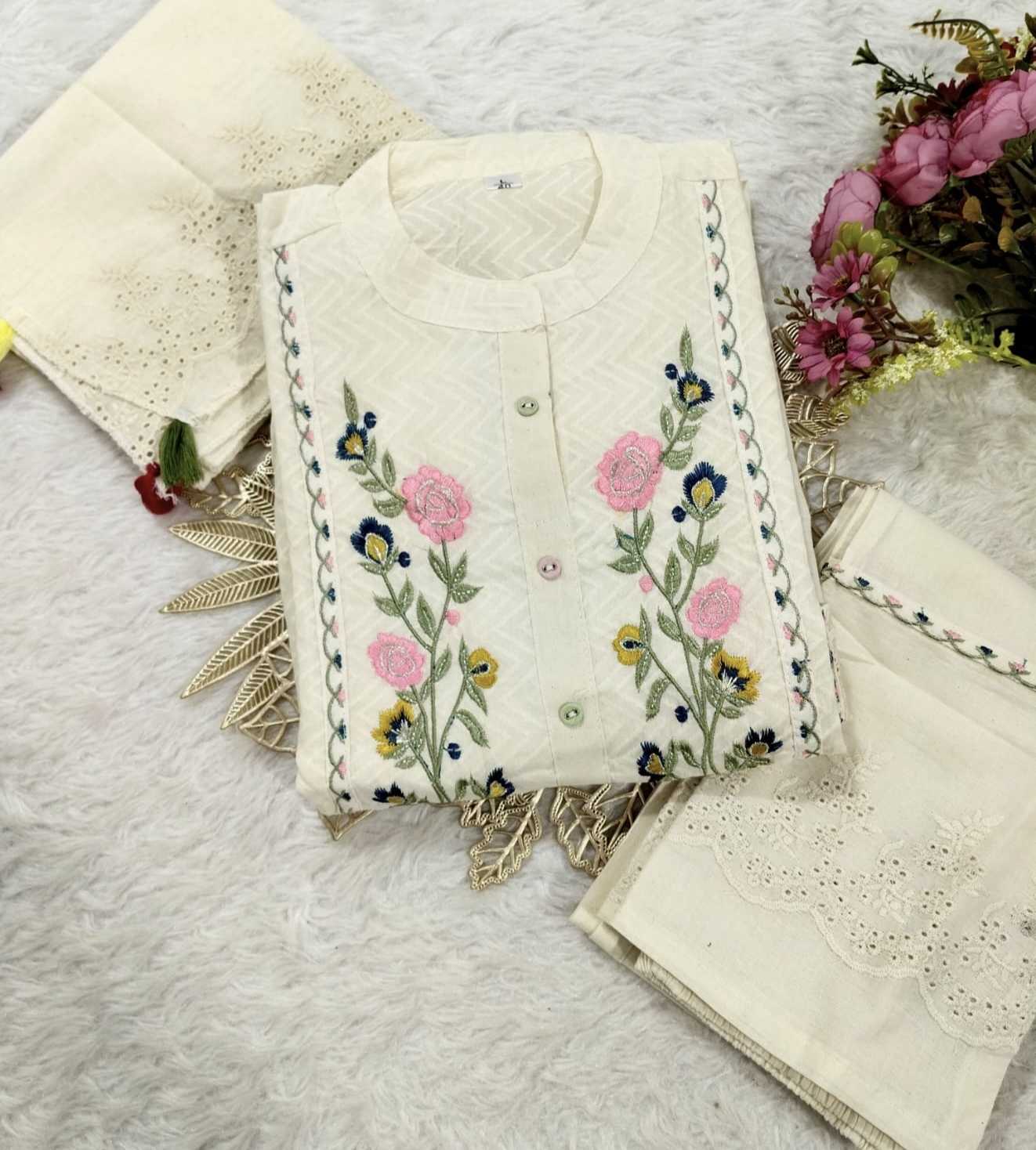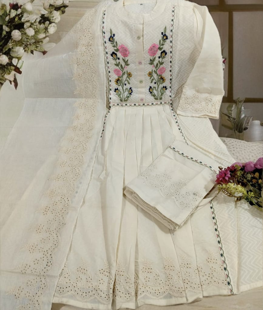 Cotton Dobby Schiffli Kurti Set