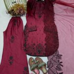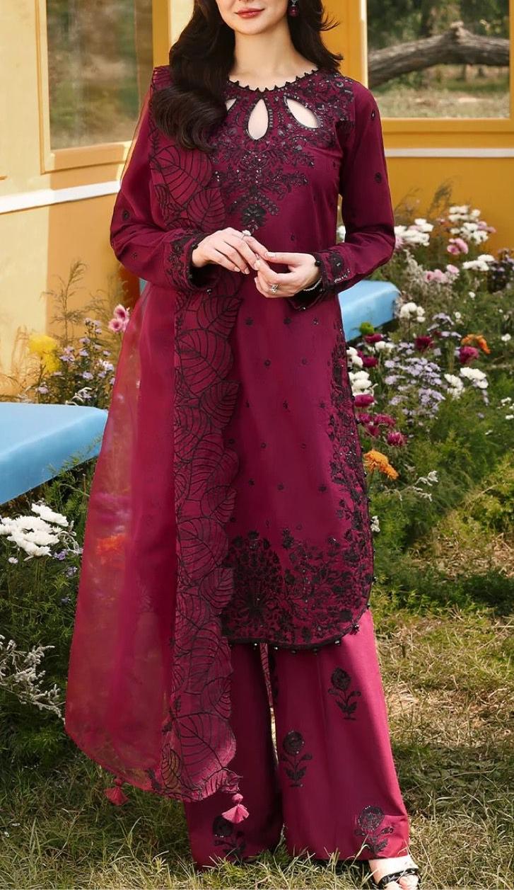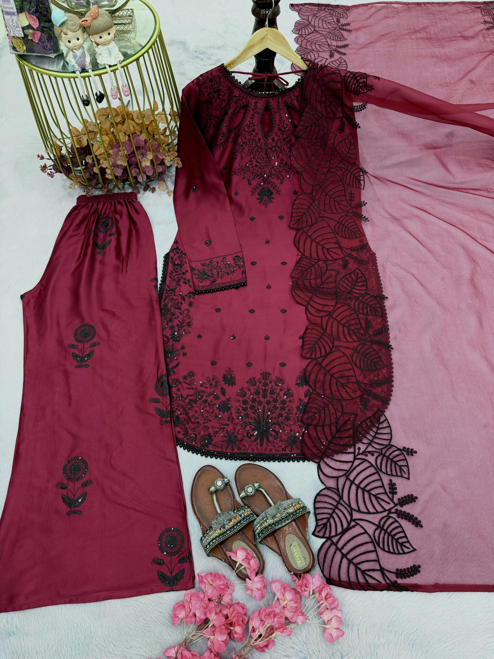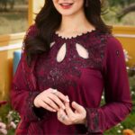 Luxurious Rayon adorned with intricate embroidery & shimmering sequence work.