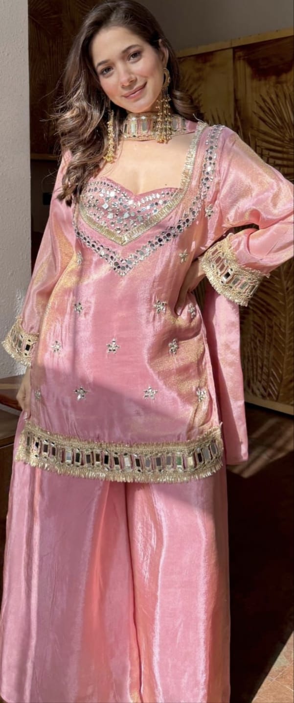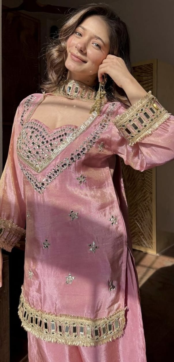 Step into pure elegance with our stunning Sharara Set β€” designed for the modern woman who loves a touch of glamour and tradition. The rich Fendi Silk, sparkling real mirror work, and flowy sharara create a look that’s effortlessly graceful and party-ready.
