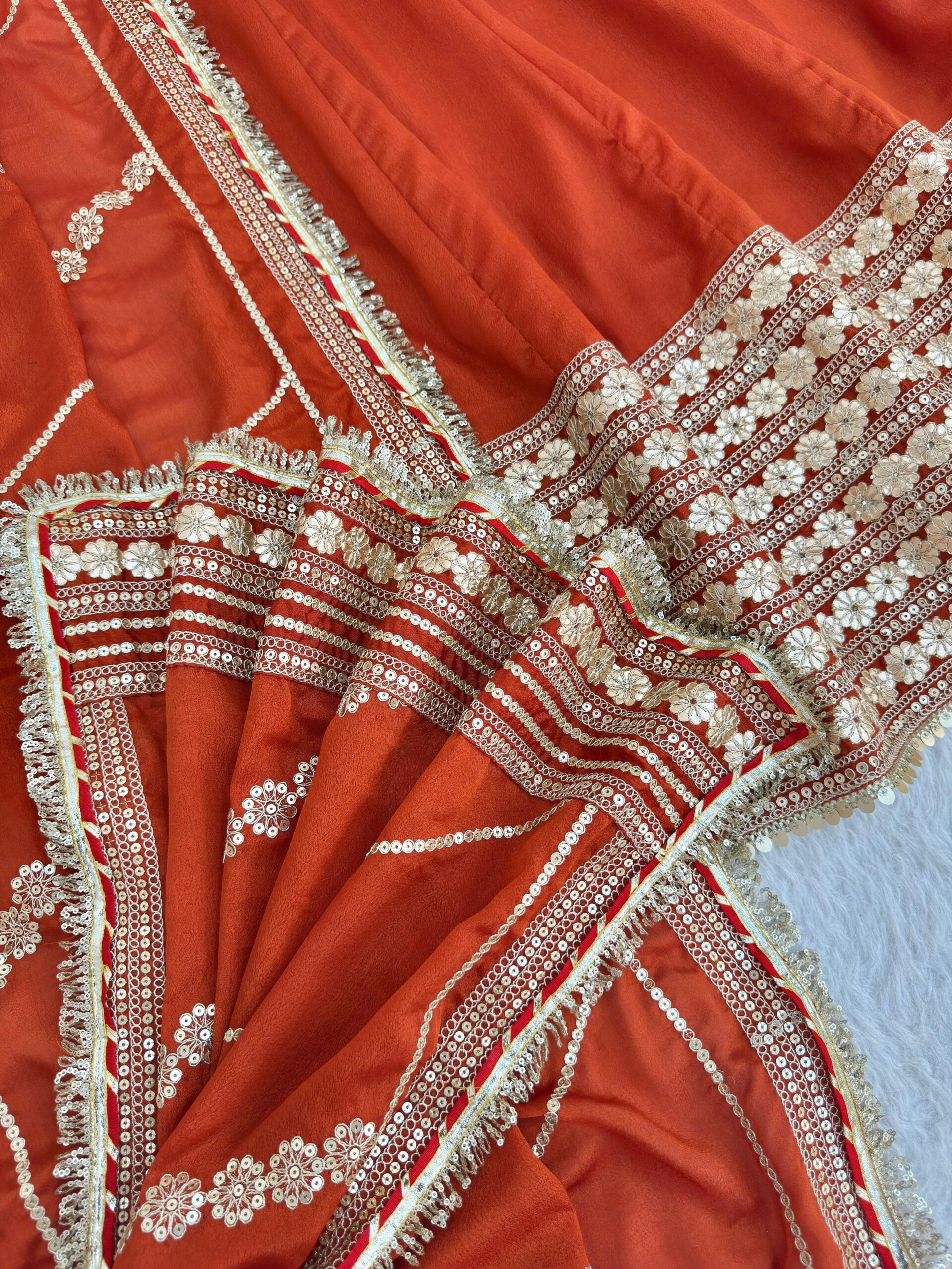 Crafted in luxe Chinon silk with intricate embroidery and shimmering sequence work, every detail is designed to make you shine effortlessly.