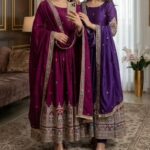 Crafted in rich Chinon silk and adorned with intricate coding dori embroidery & shimmering sequence work, this outfit is made for those who love to shine without saying a word.