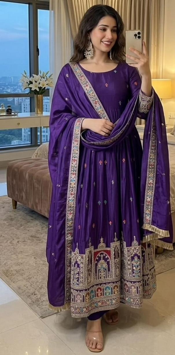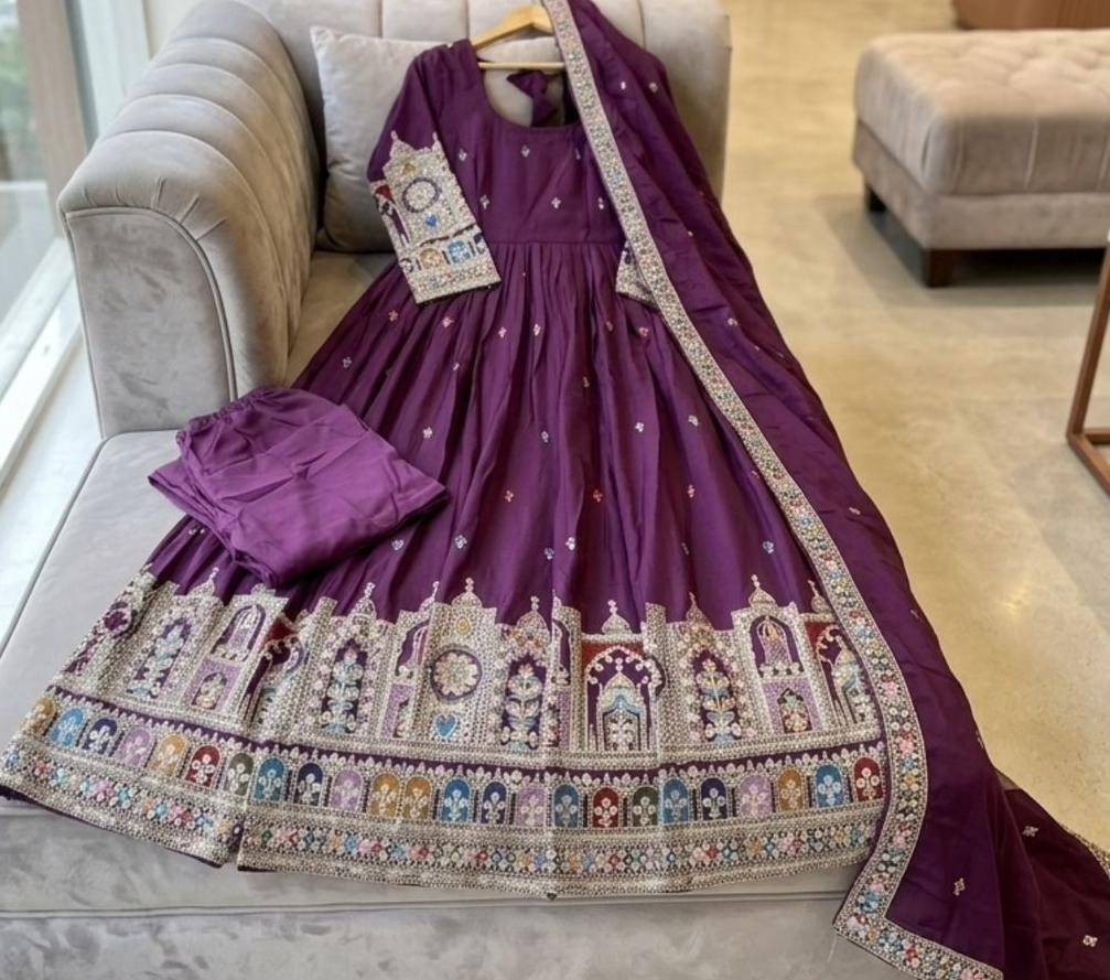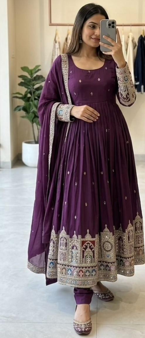 Elegant Designer Anarkali Gown, Bottom & Dupatta Set