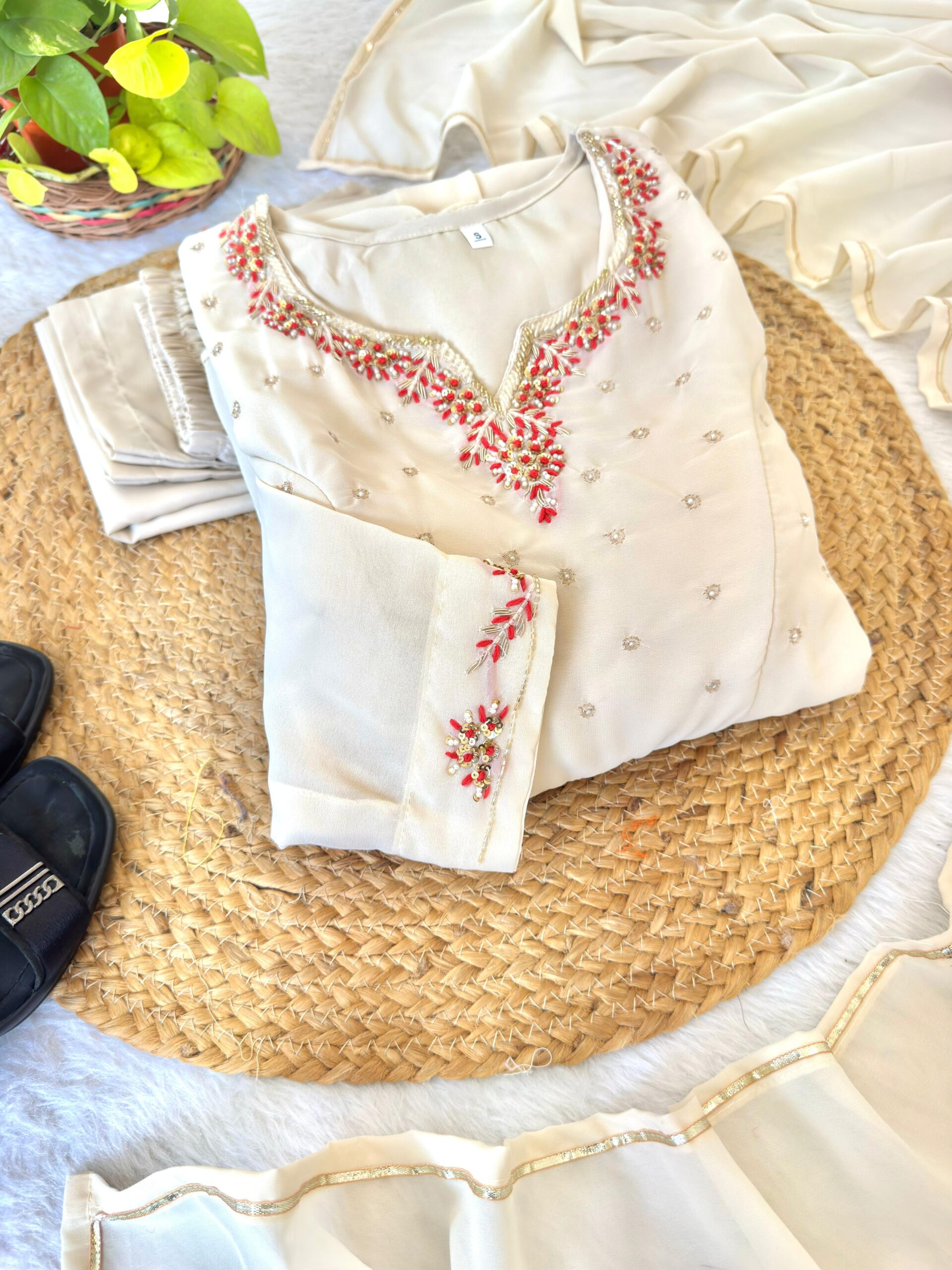 Intricate handwork on neck & sleeves.