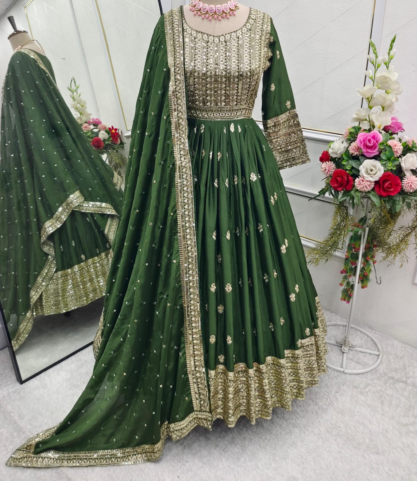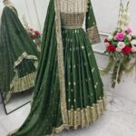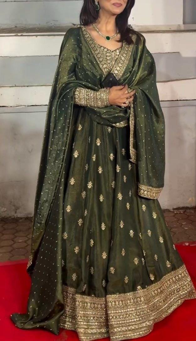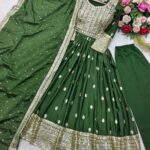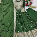 Celebrate Mehndi function in style with this beautifully crafted gown set β designed to bring elegance, comfort, and glamour together. Detailed sequin and embroidery work make it the perfect outfit for your special occasion.