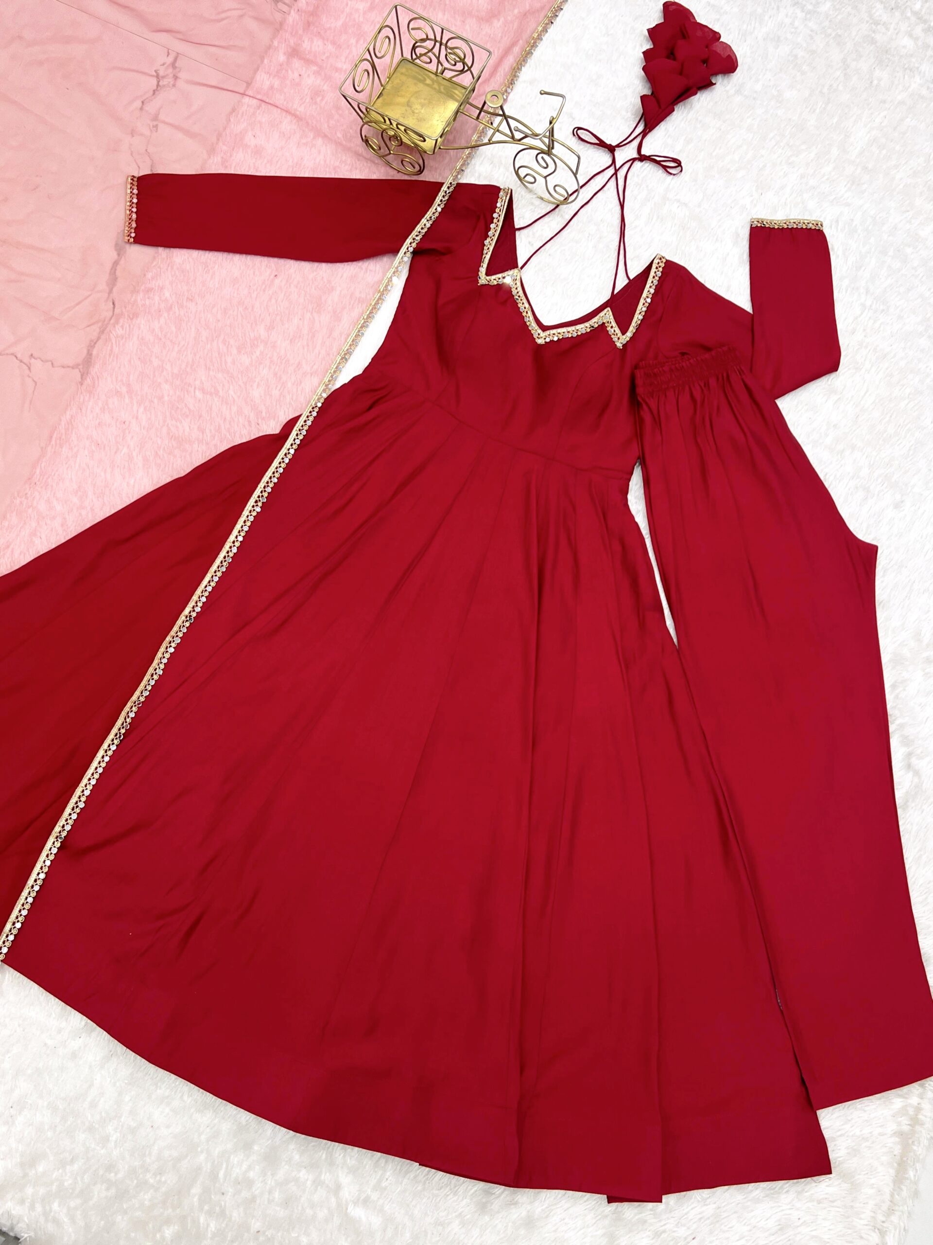 Anarkali Fabric: Premium quality Heavy Pure Roman Silk Chanderi. Fancy lace pattern, padded for comfort