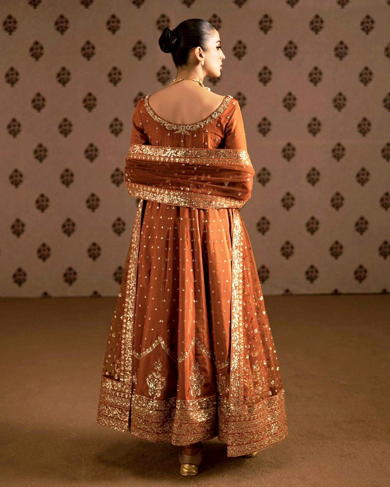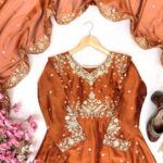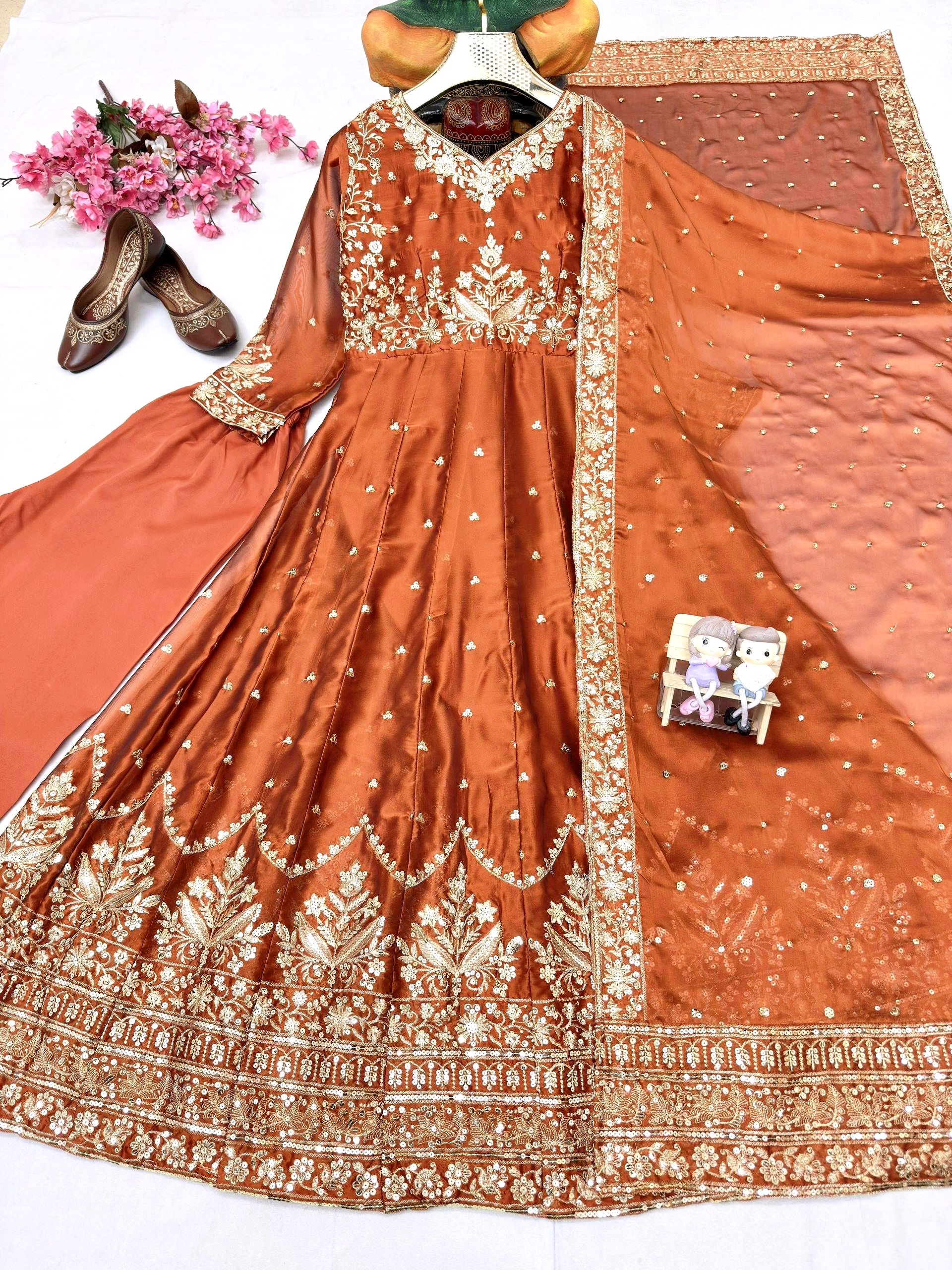 Step into elegance with our new designer Anarkali gown – a flawless blend of sophistication and sparkle. Crafted from premium black Rangoli silk and adorned with glimmering 5mm sequins & intricate zari embroidery, this gown promises a regal silhouette that flows effortlessly with every step.