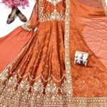 Elegant Embroidered Designer Anarkali Three Piece Set