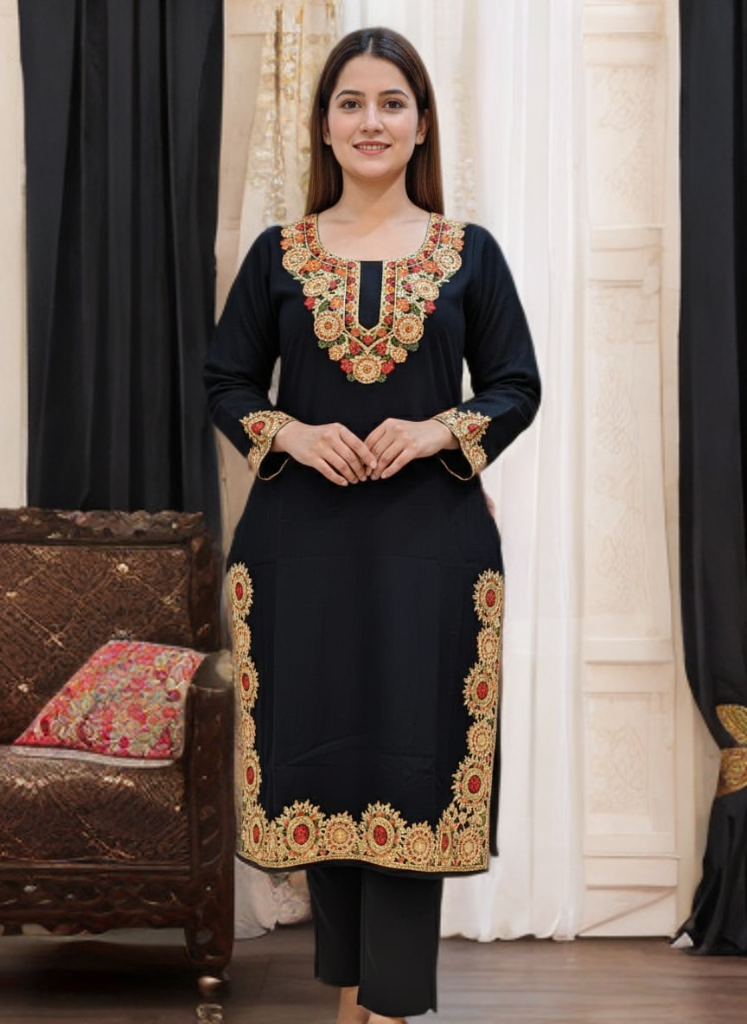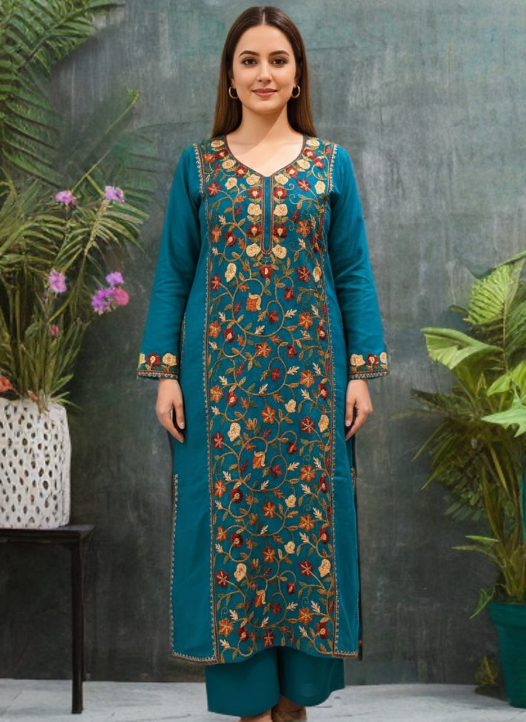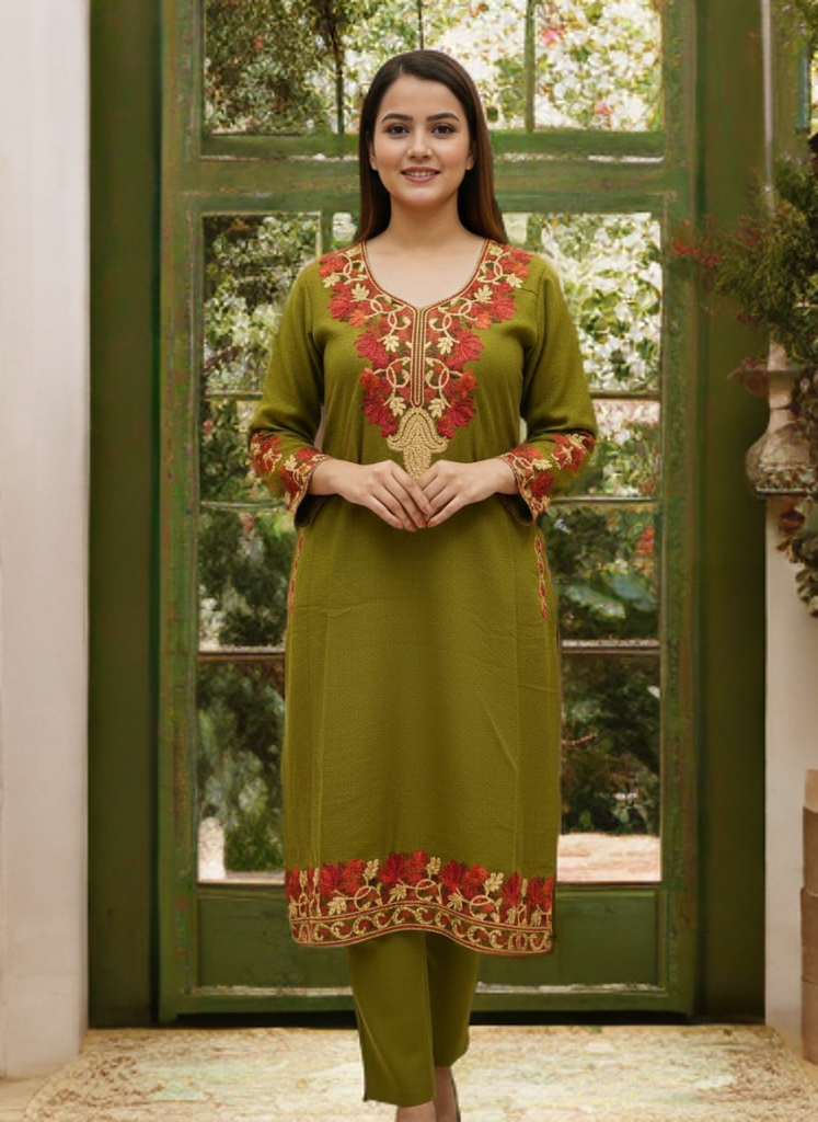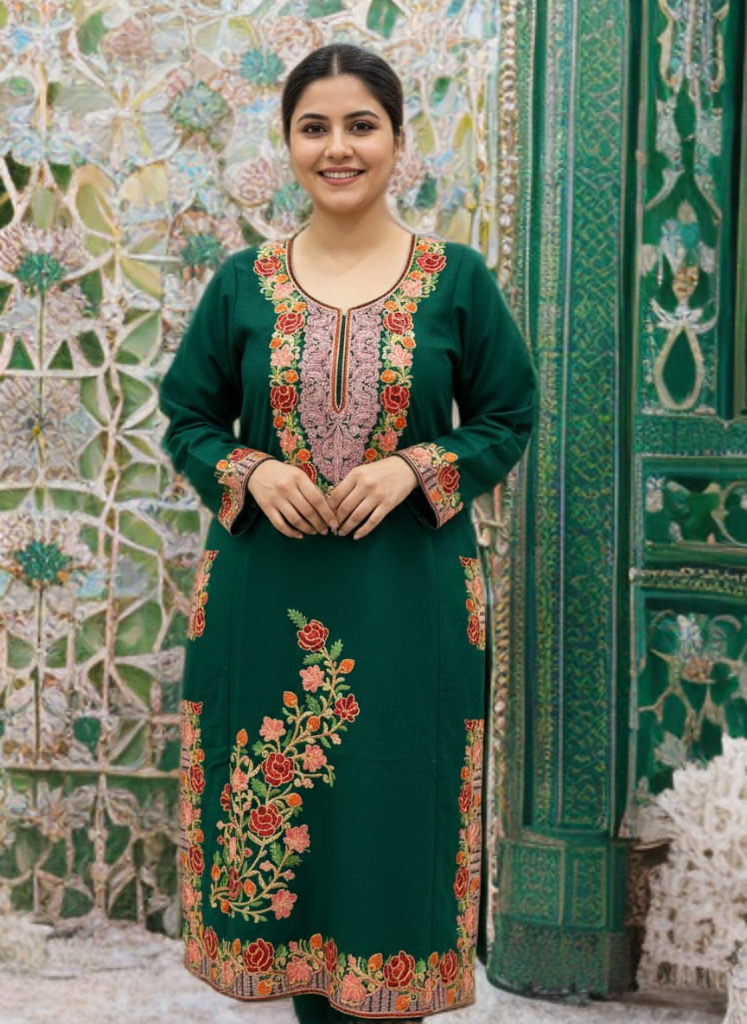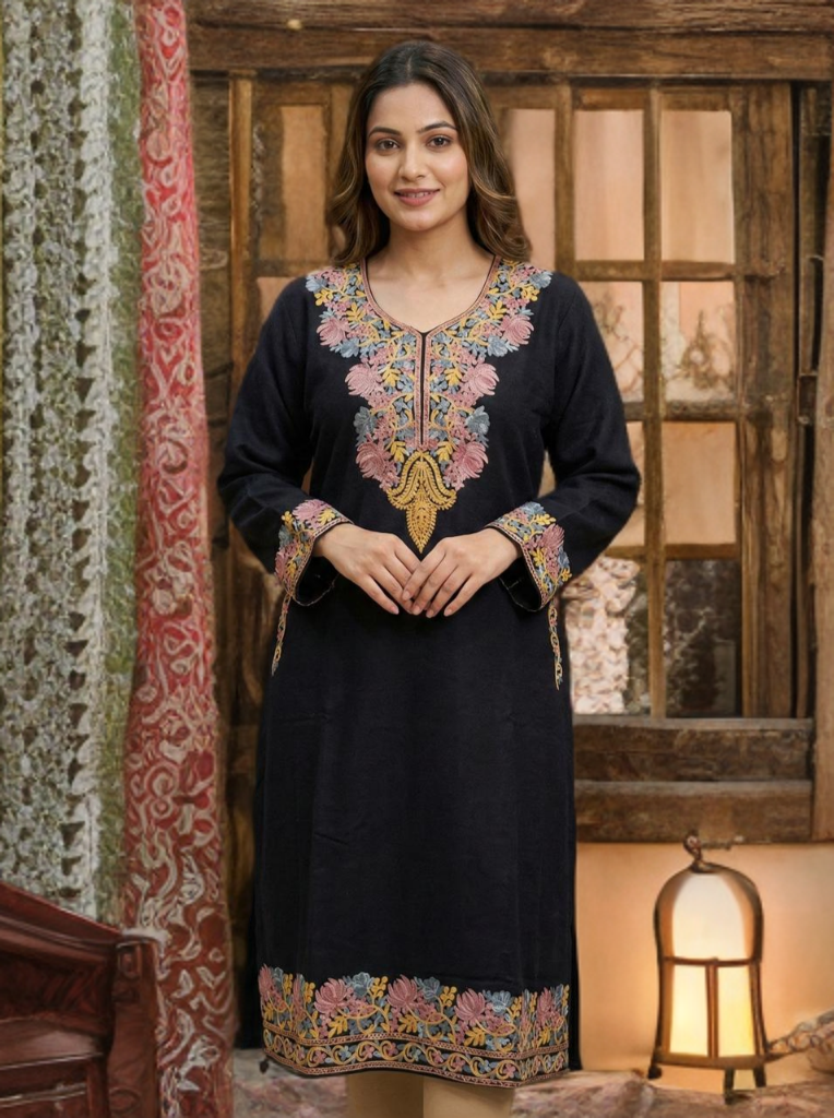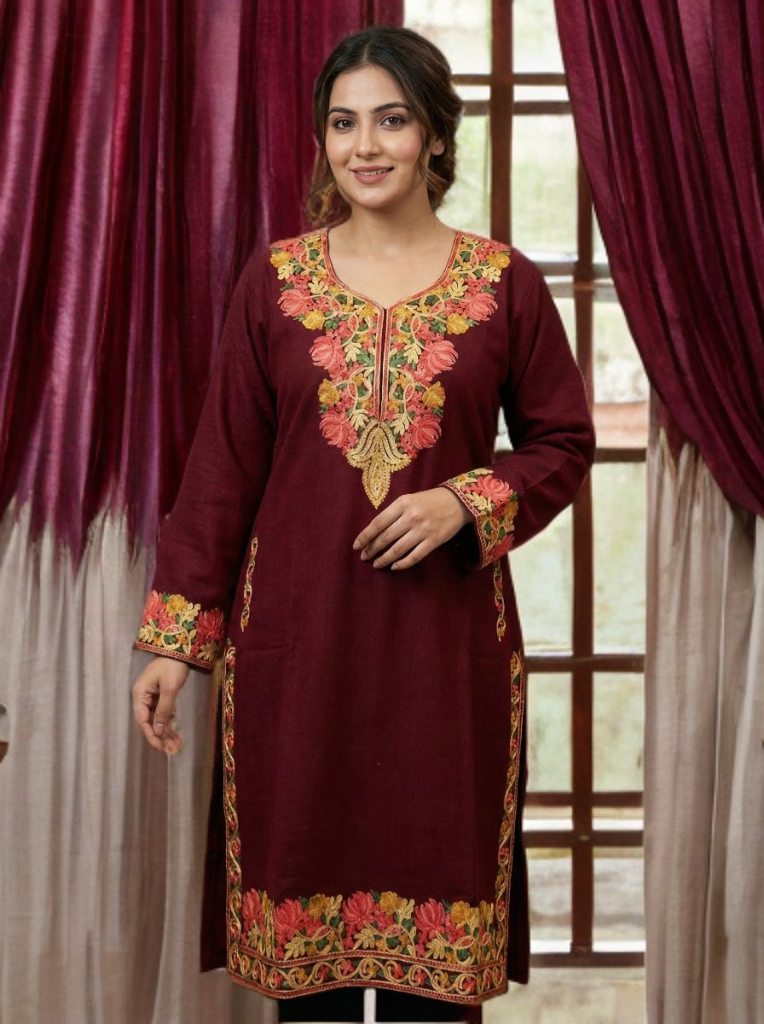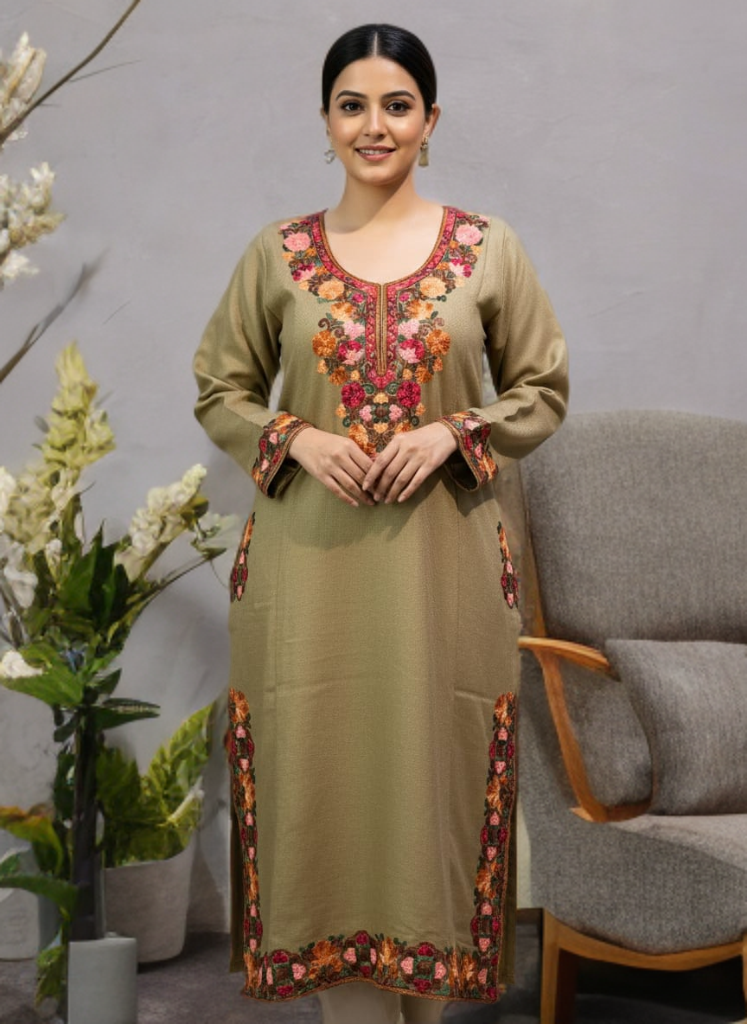 Experience the timeless elegance of Kashmir with this beautifully crafted traditional Kashmiri Pheran.