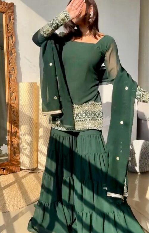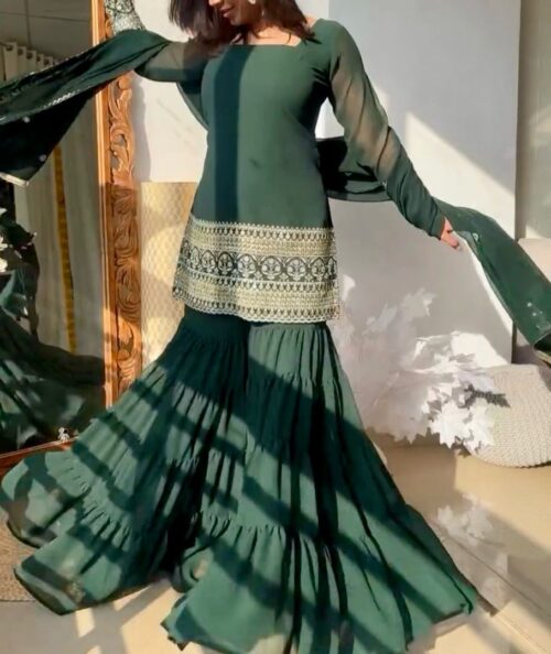 Beautiful Green Georgette Sharara Suit
